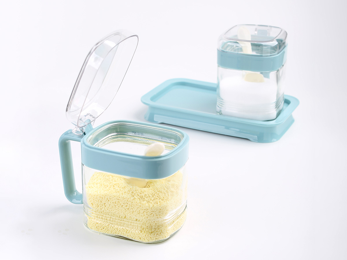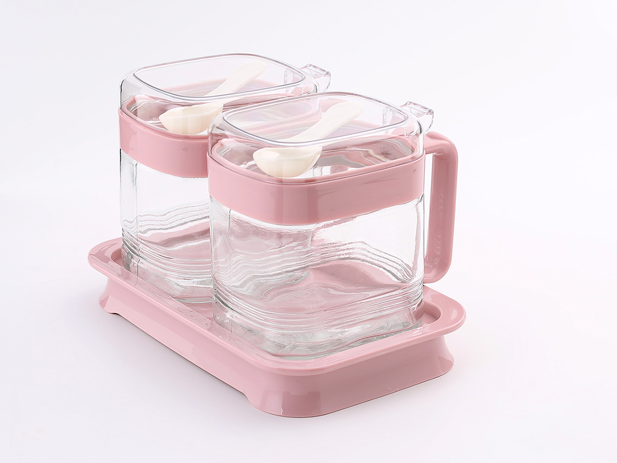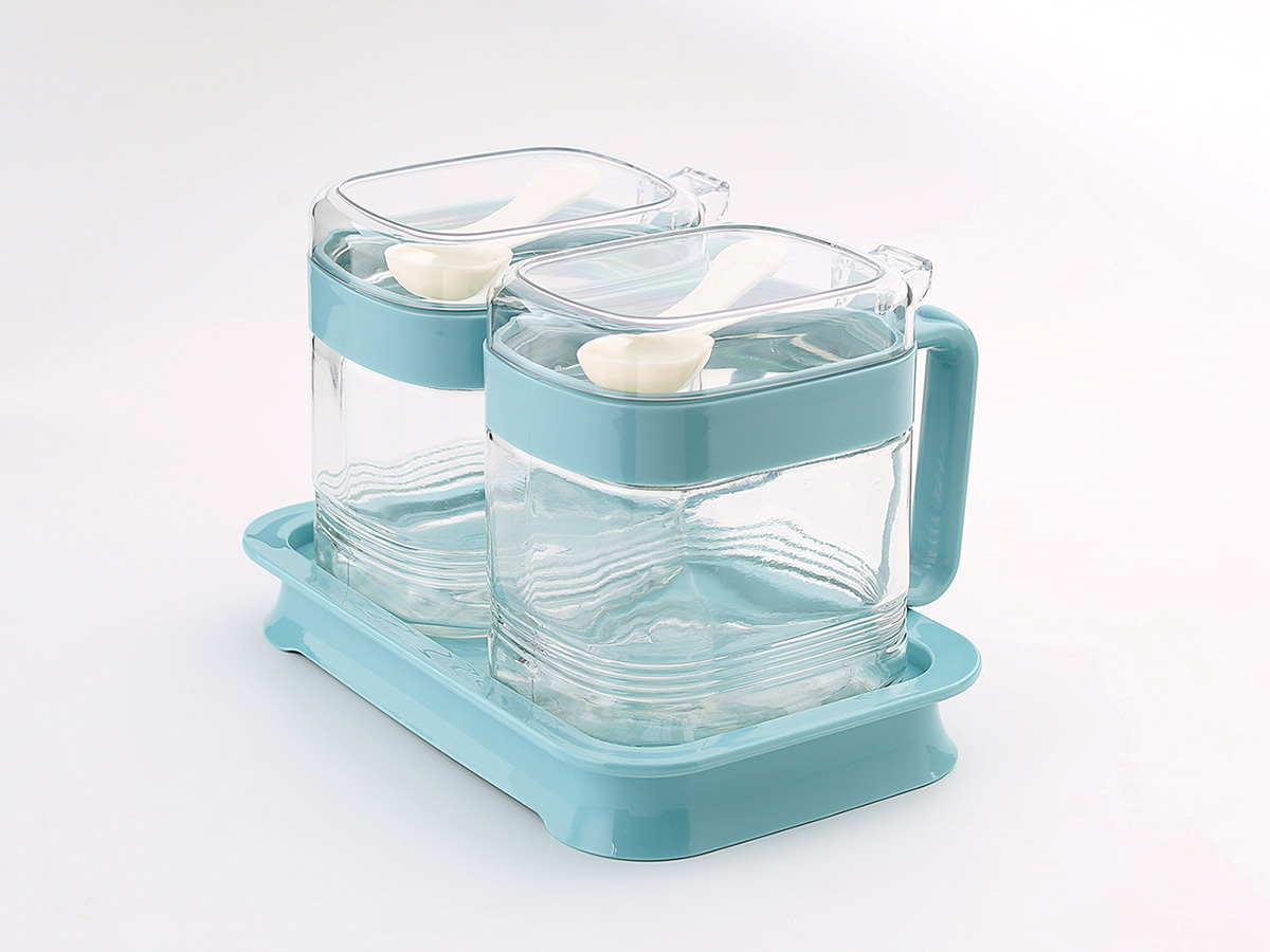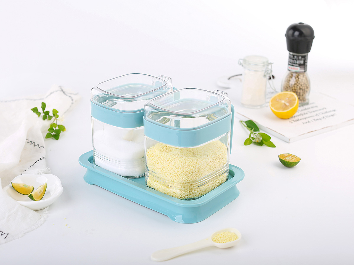 簡約方形玻璃調(diào)味罐(2格)