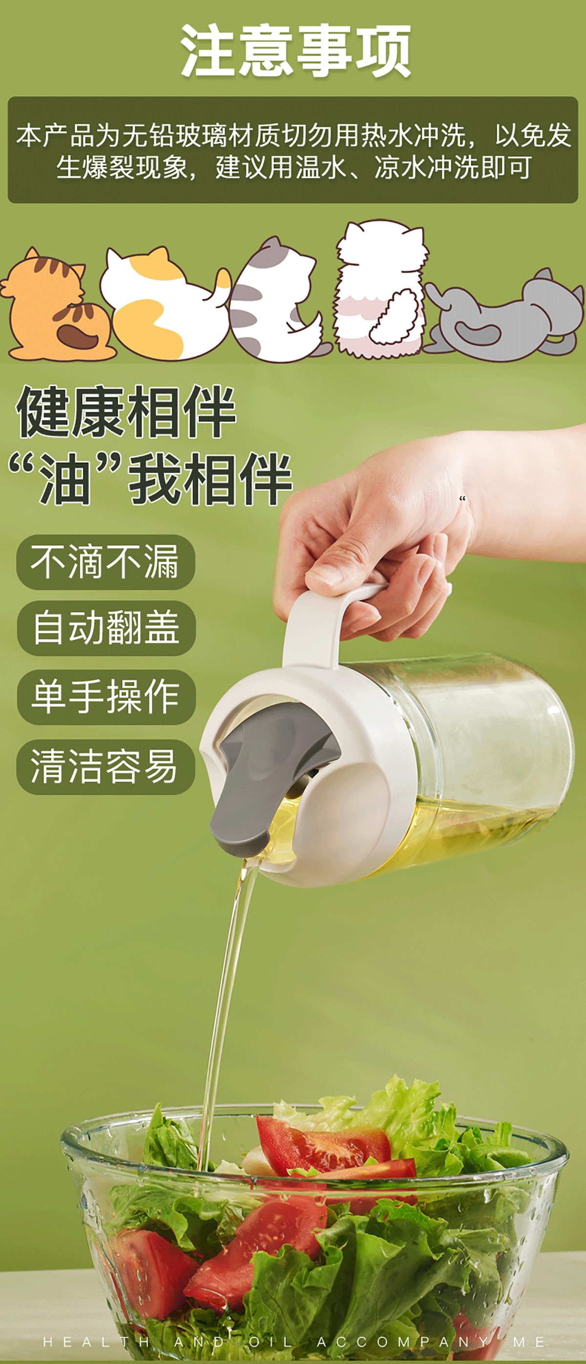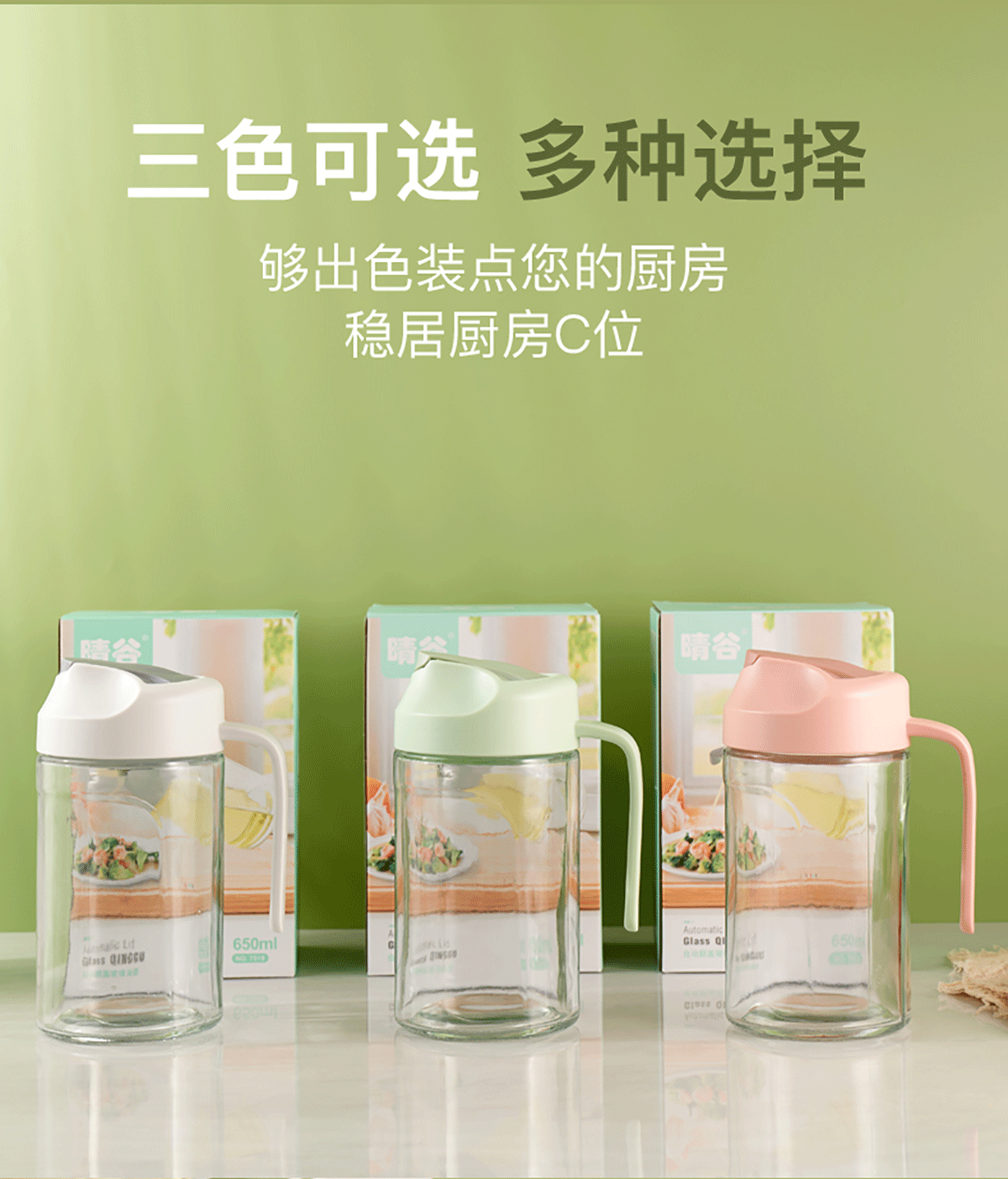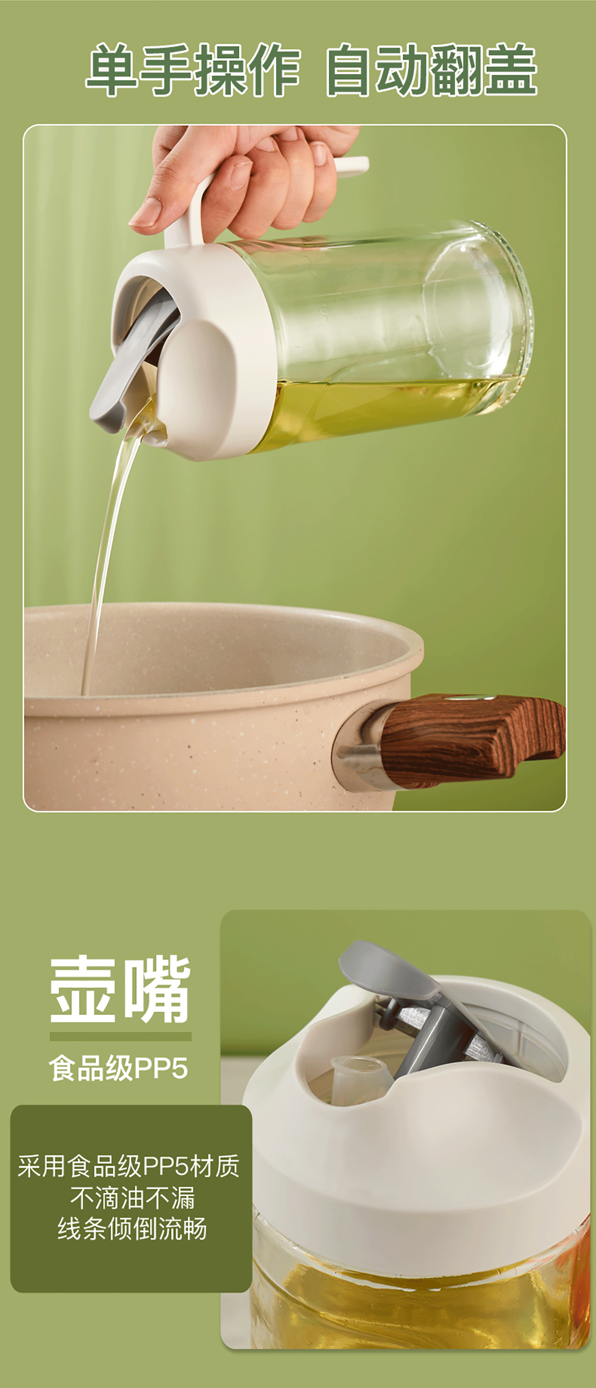 自動翻蓋玻璃油壺550ml/650ml