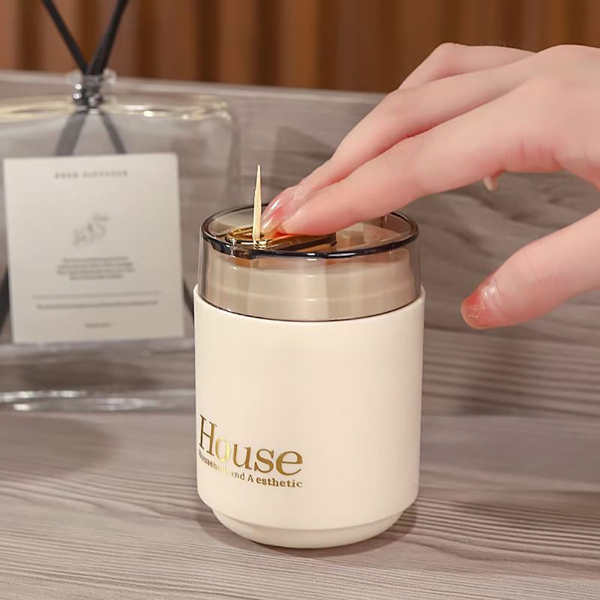 奶油風(fēng)自動牙簽筒