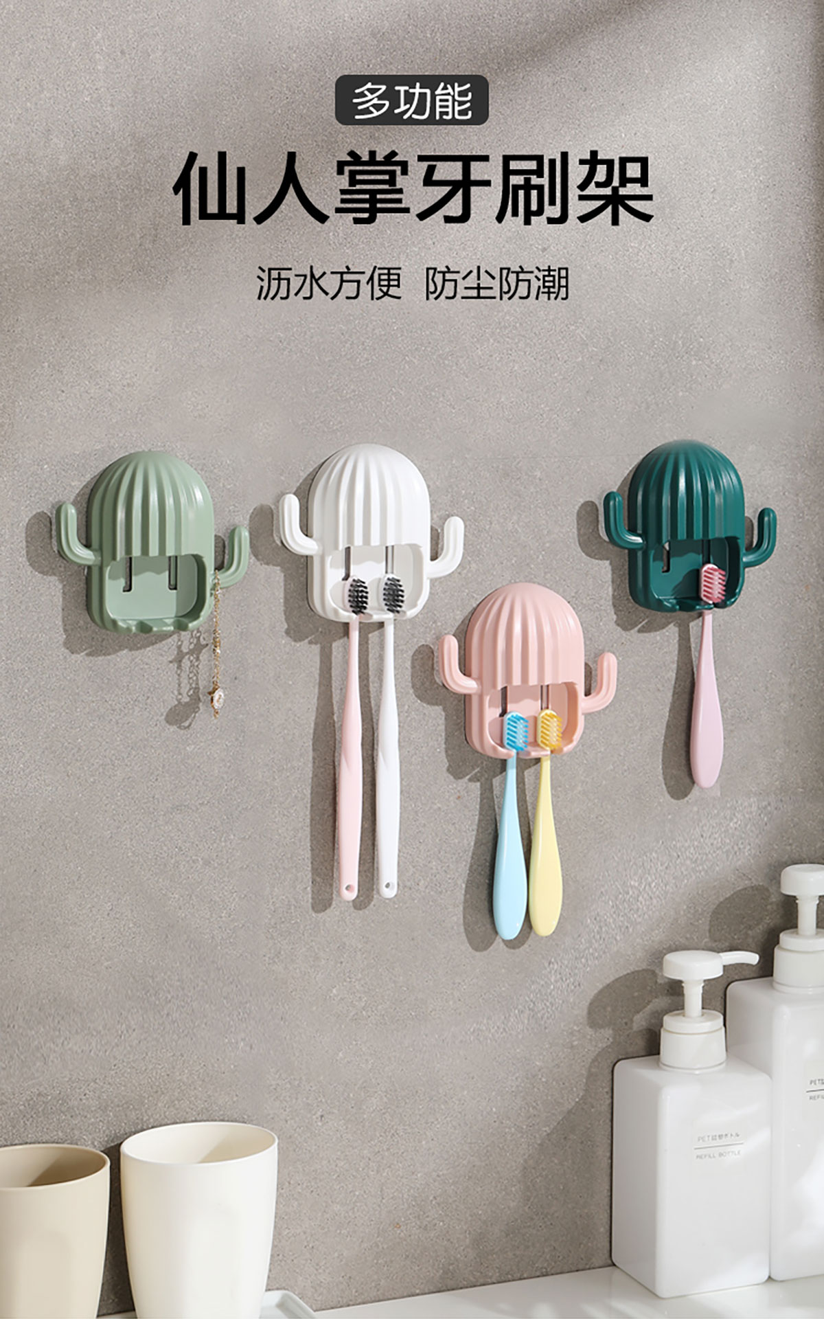 仙人掌多功能牙刷架