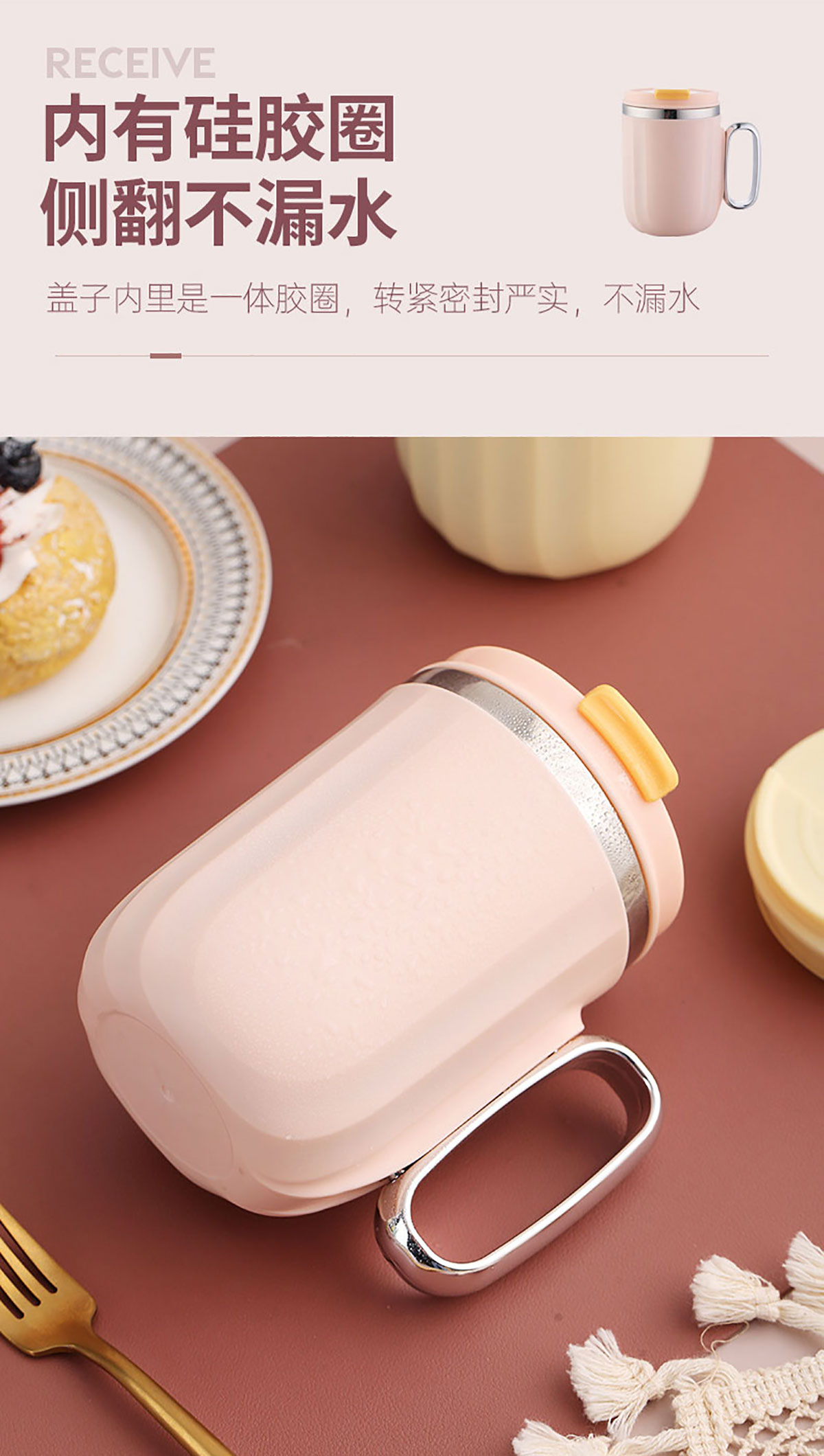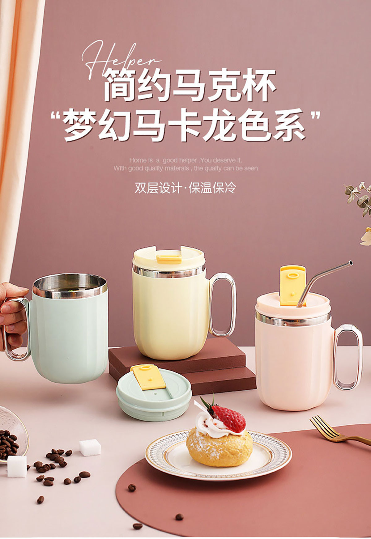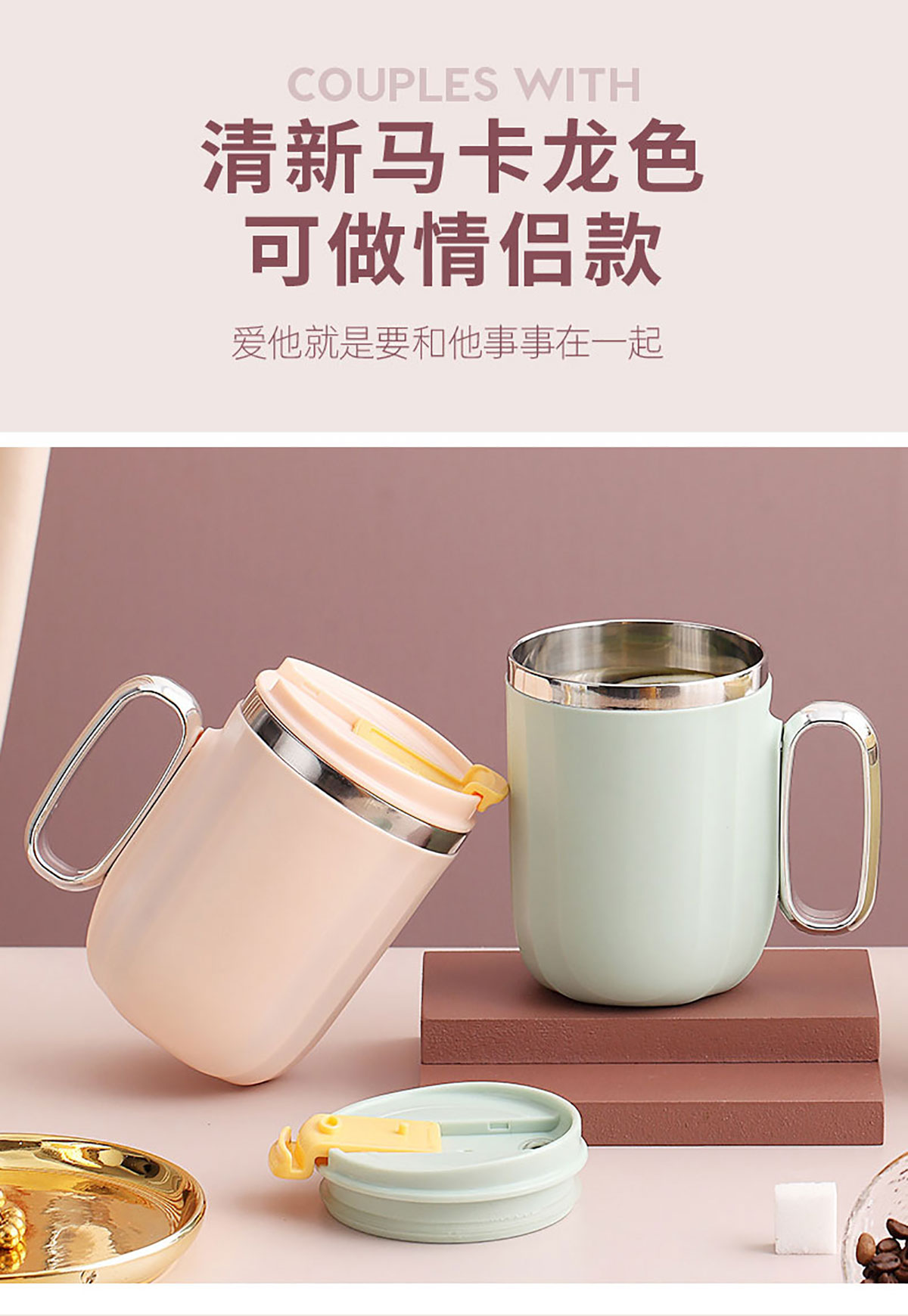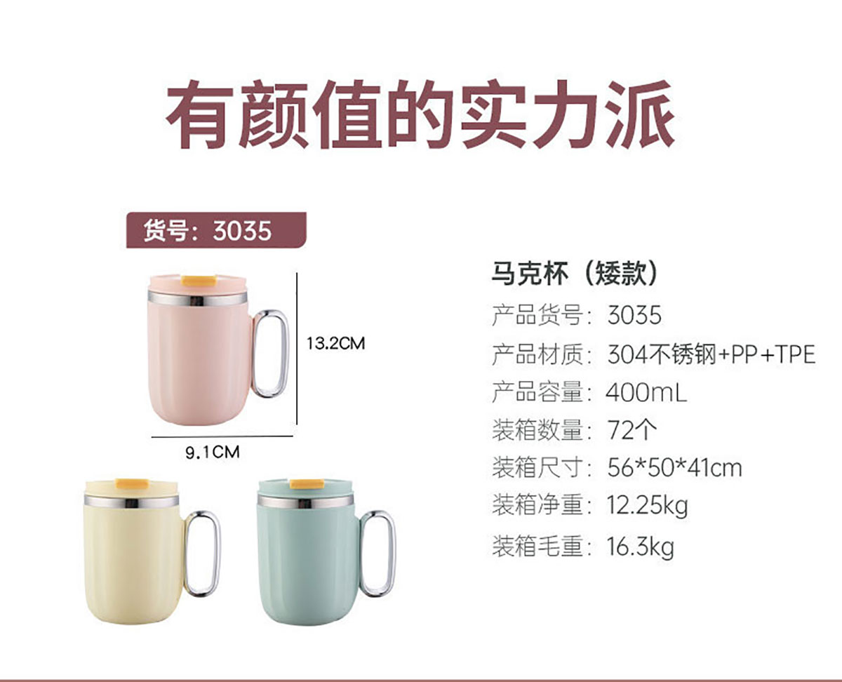 400ml馬卡龍翻扣304不銹鋼馬克杯(帶手柄鍍銀)
