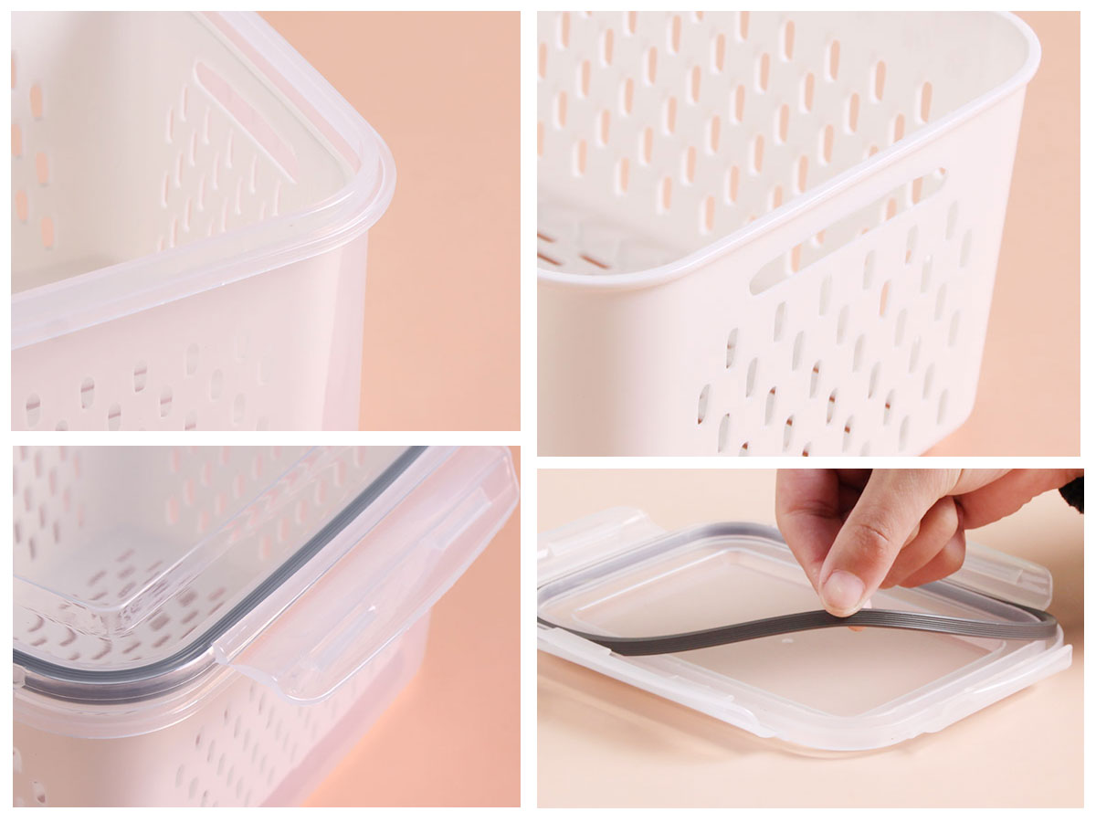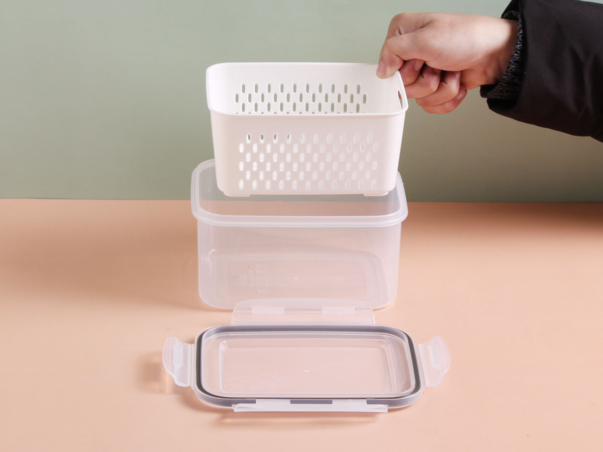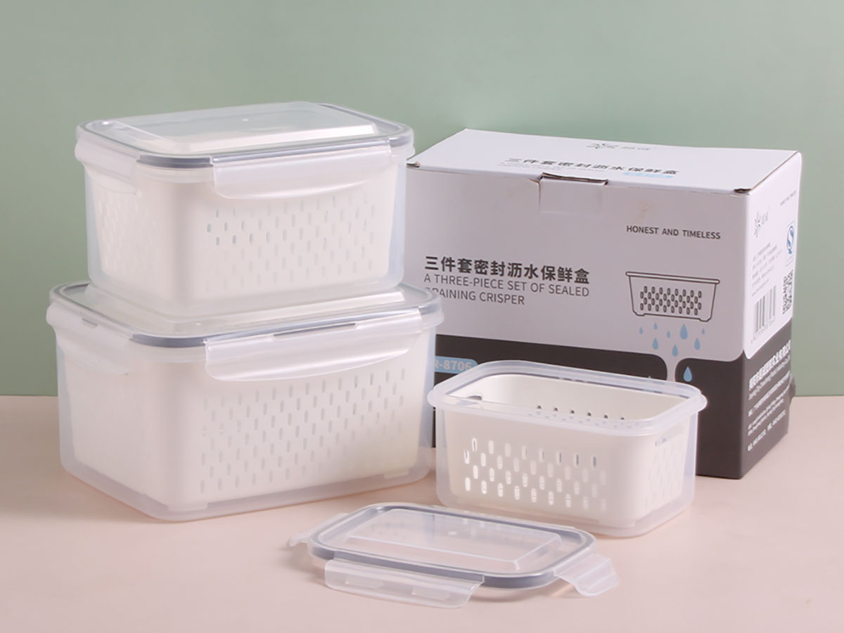 三件套密封瀝水保鮮盒(長方形)
