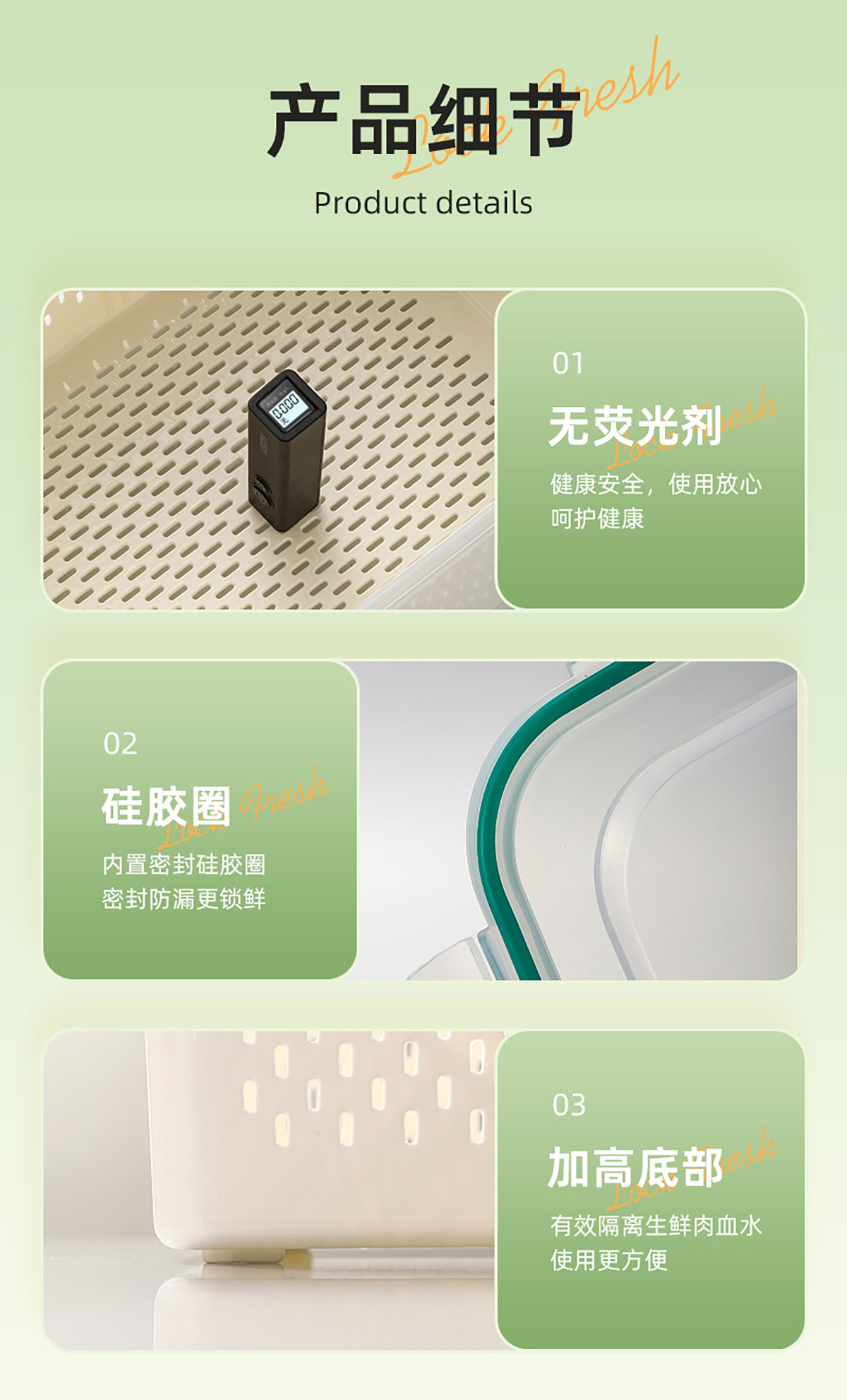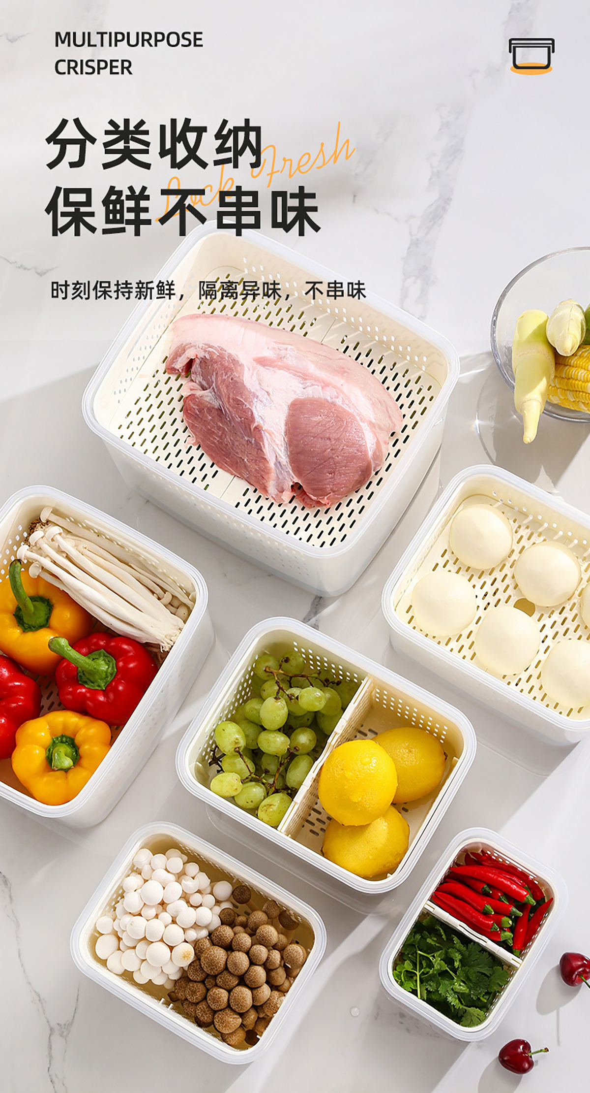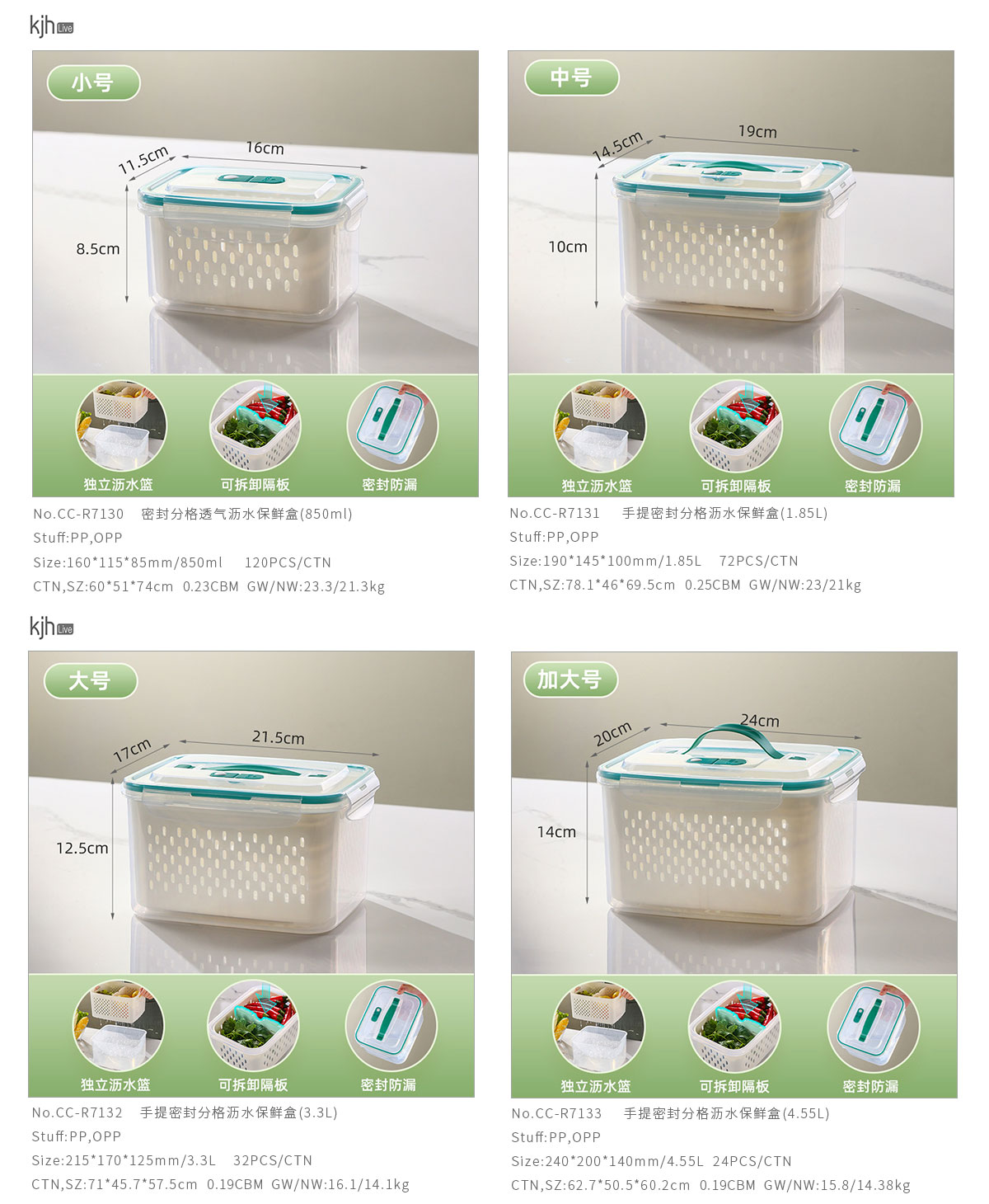 手提密封分格瀝水保鮮盒(850ml/1.85L/3.3L/4.55L/7.20L)