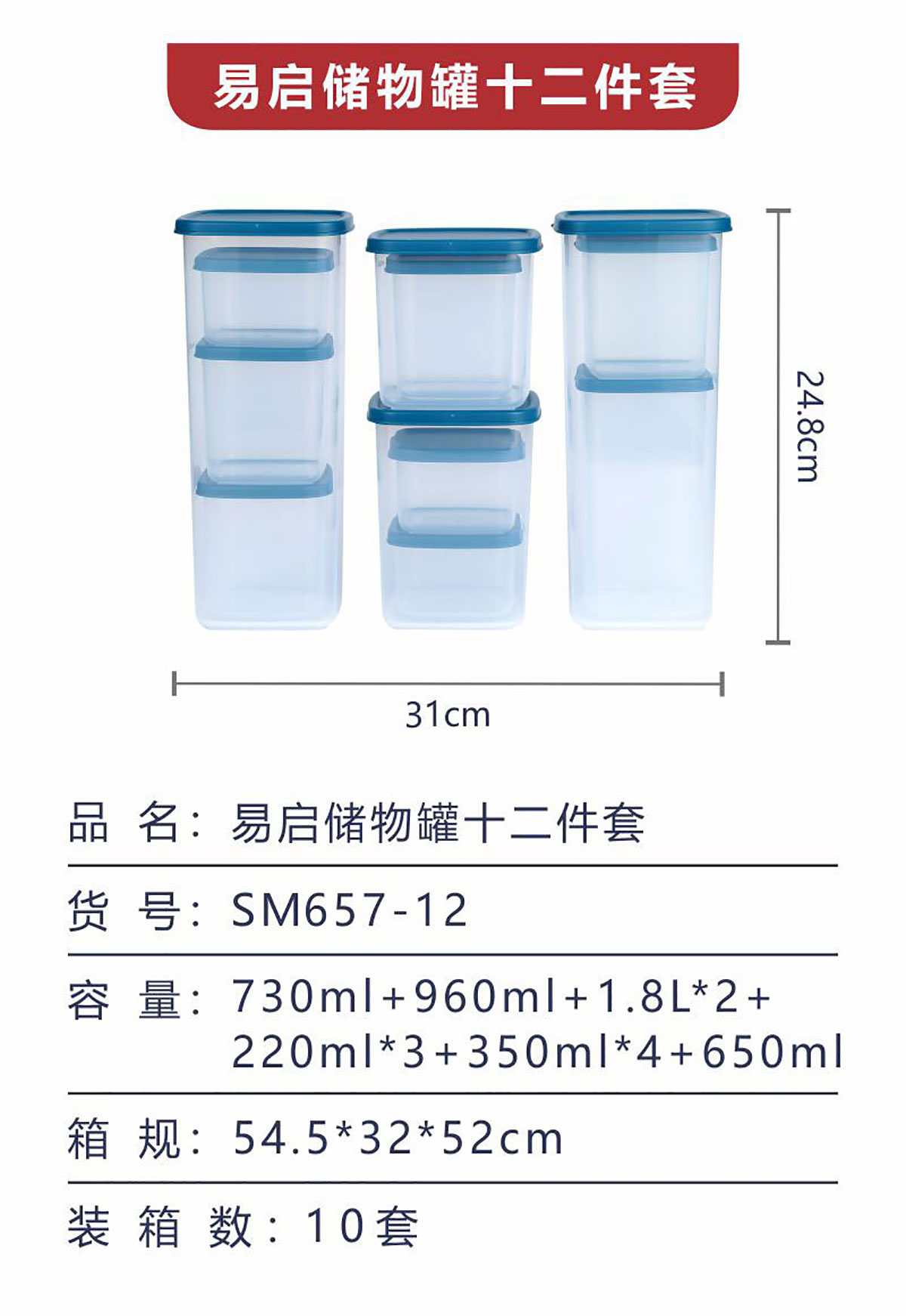 易啟密封罐收納套裝十二件套