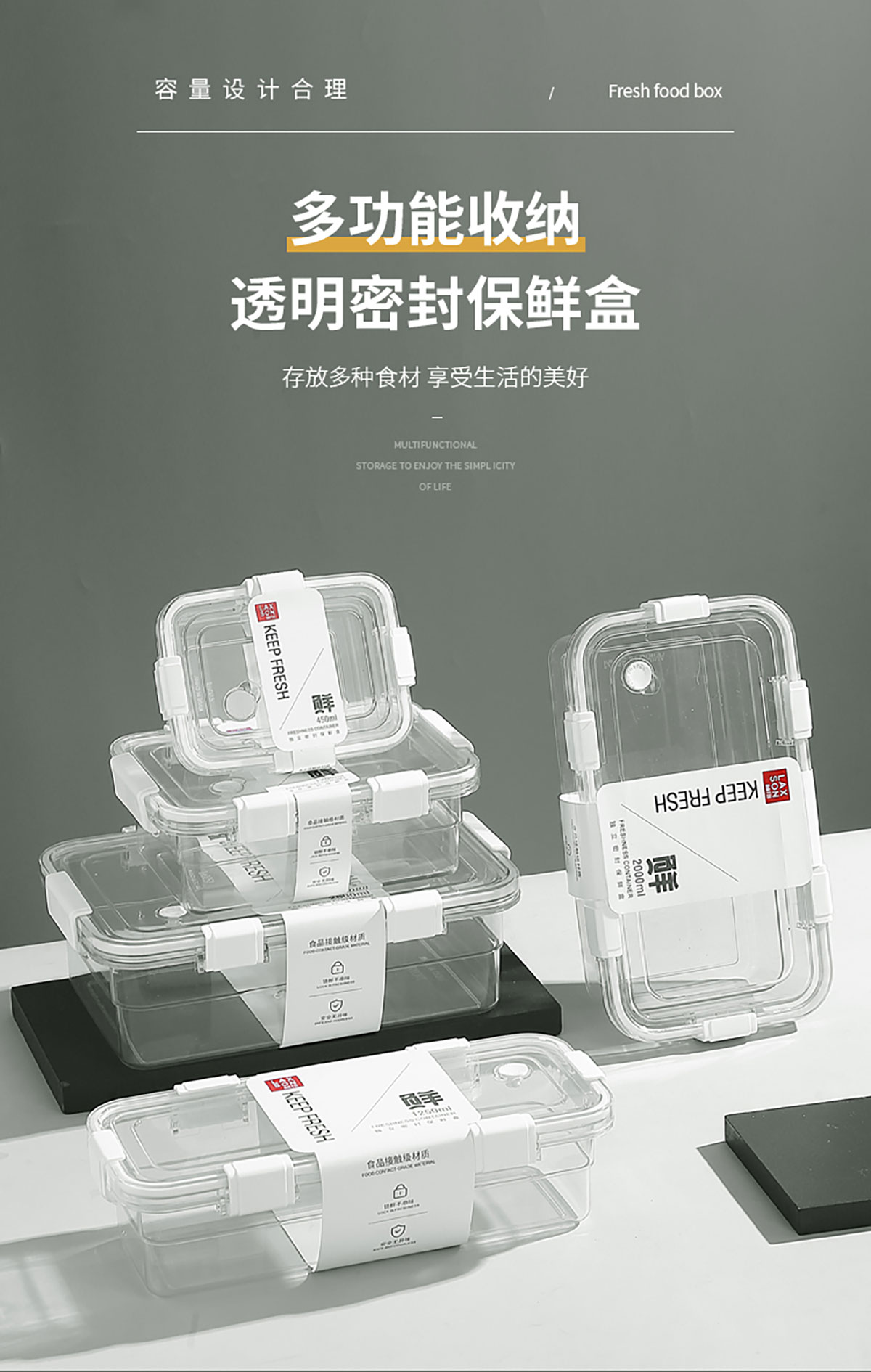 獨立密封保鮮盒450ml/1200ml/2600ml/1250ml/2000ml