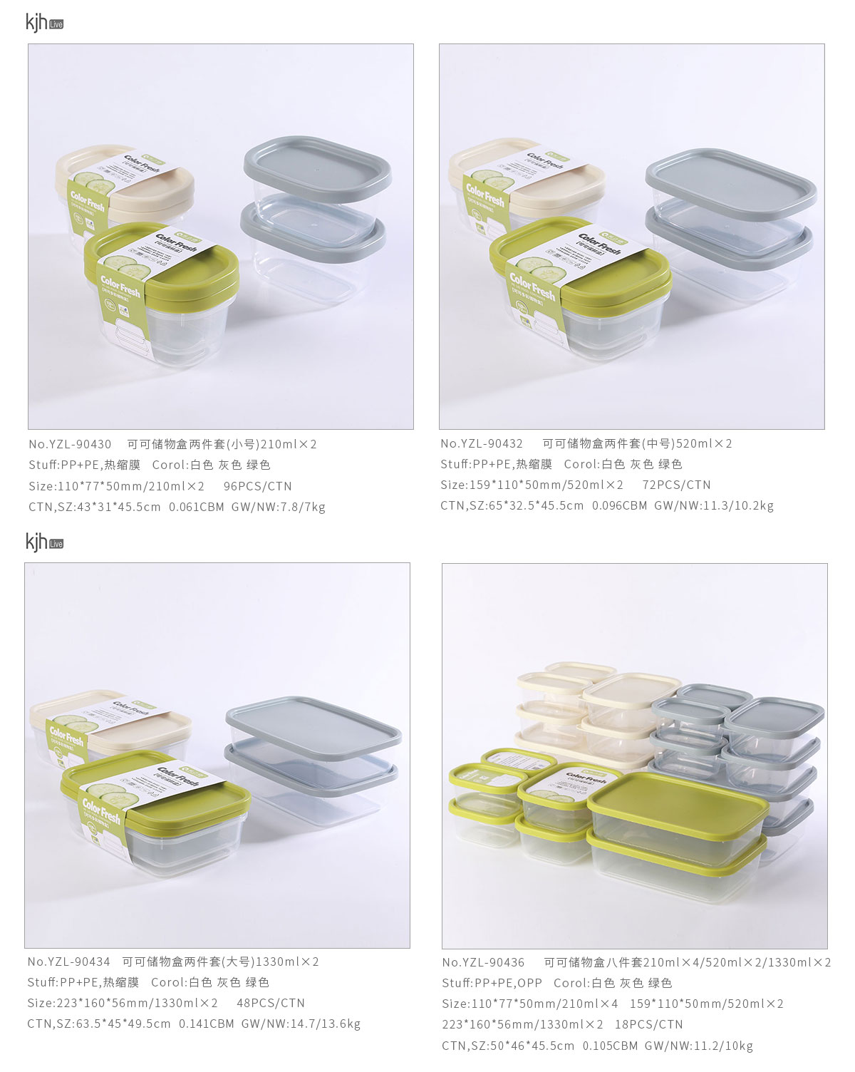 可可儲物盒兩件套(210ml小號/520ml中號/1330ml大號)/八件套