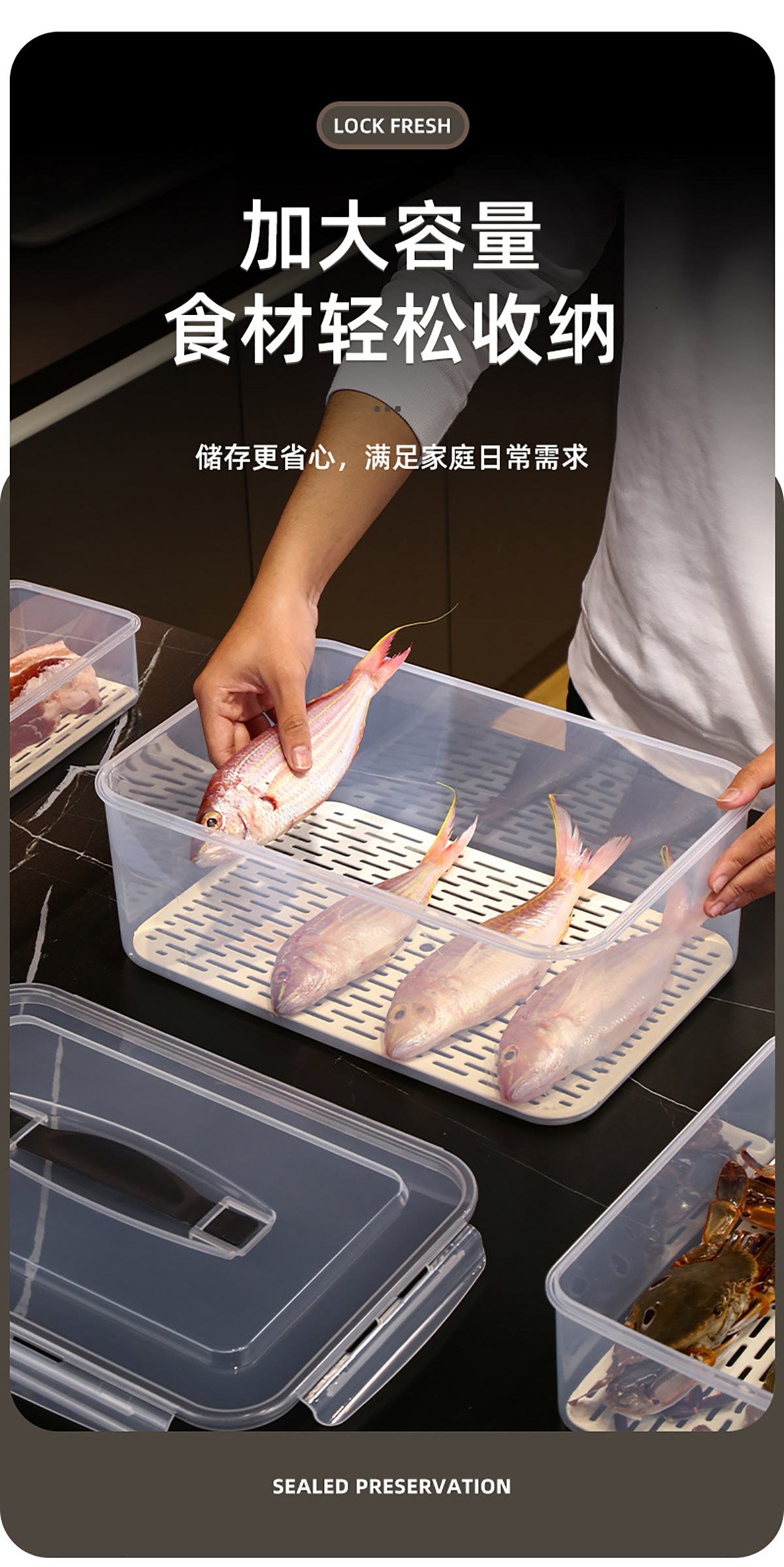 手提密封瀝水板保鮮盒(800nl/1.7L/3.4L/6.0L/10.5L/16.5L)