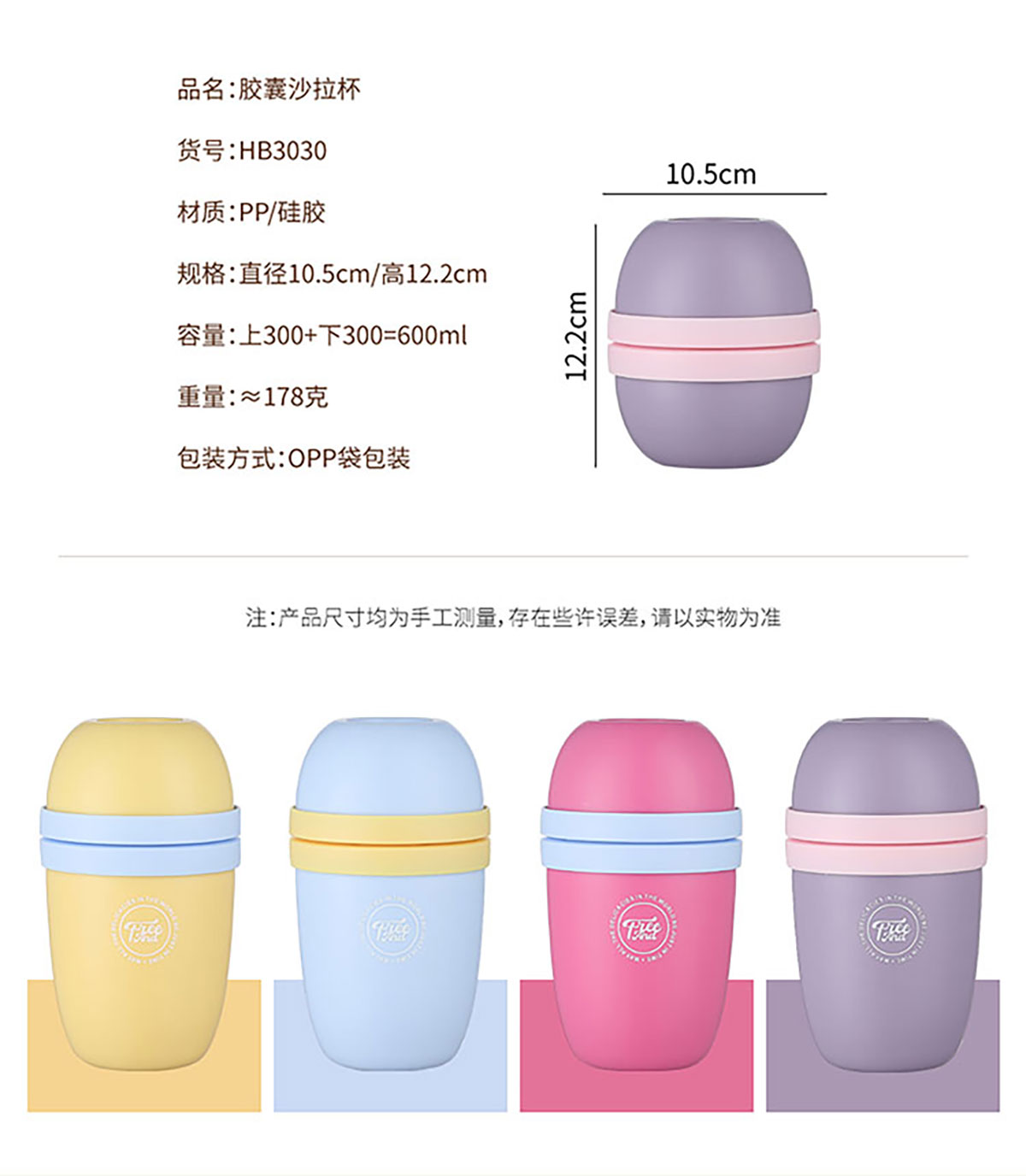 SWY-HB3030:?105*高122mm/上300+下300=600ml