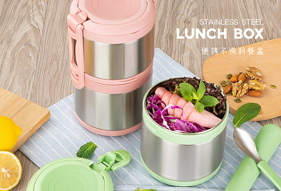 雙層便攜不銹鋼餐盒1.4L (304不銹)