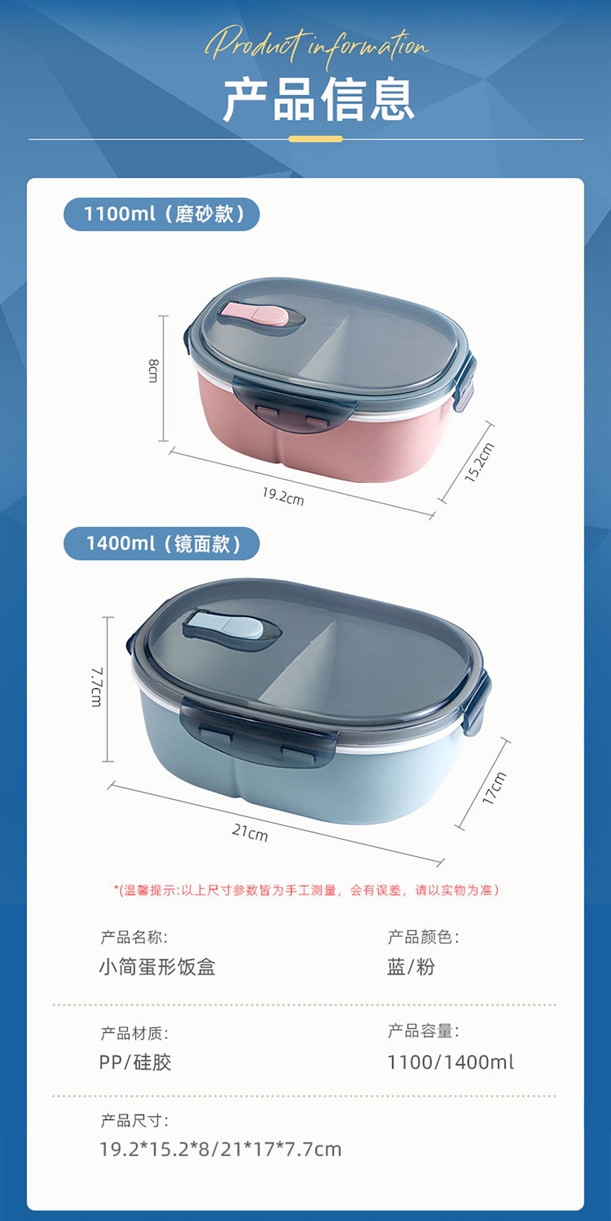 Size: HH-XJ8158(1100ml):192*152*80mm