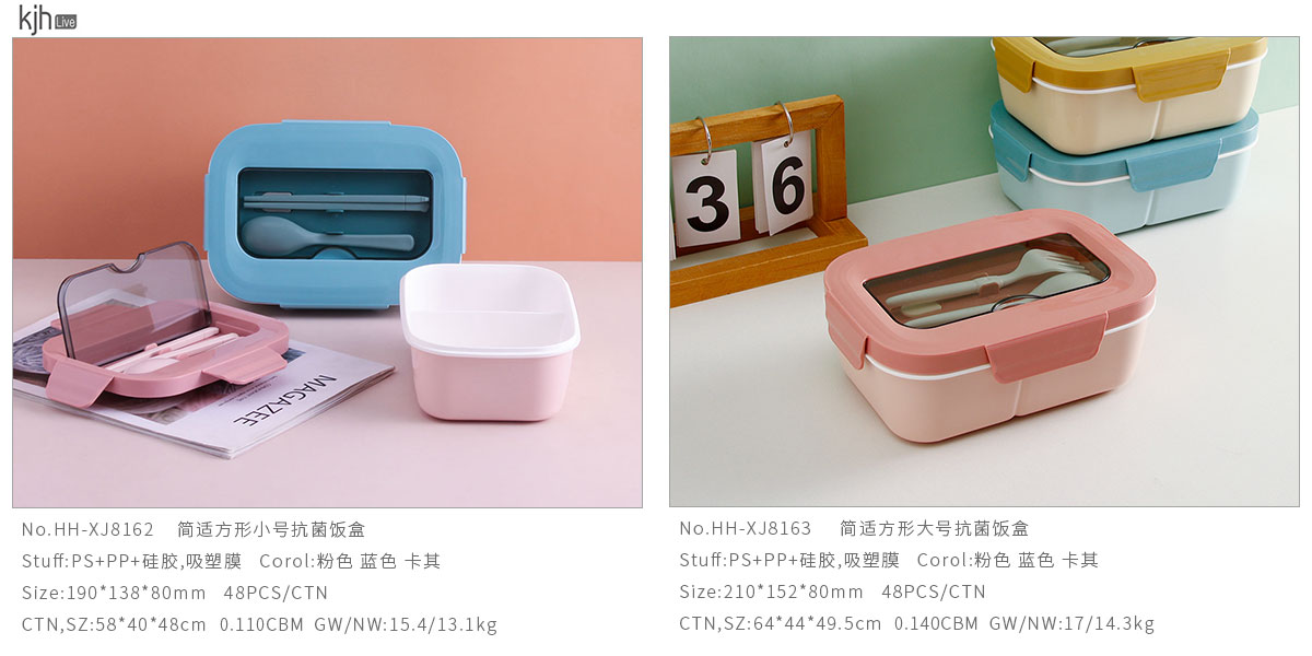 簡(jiǎn)適方形小號(hào)/大號(hào)抗菌飯盒