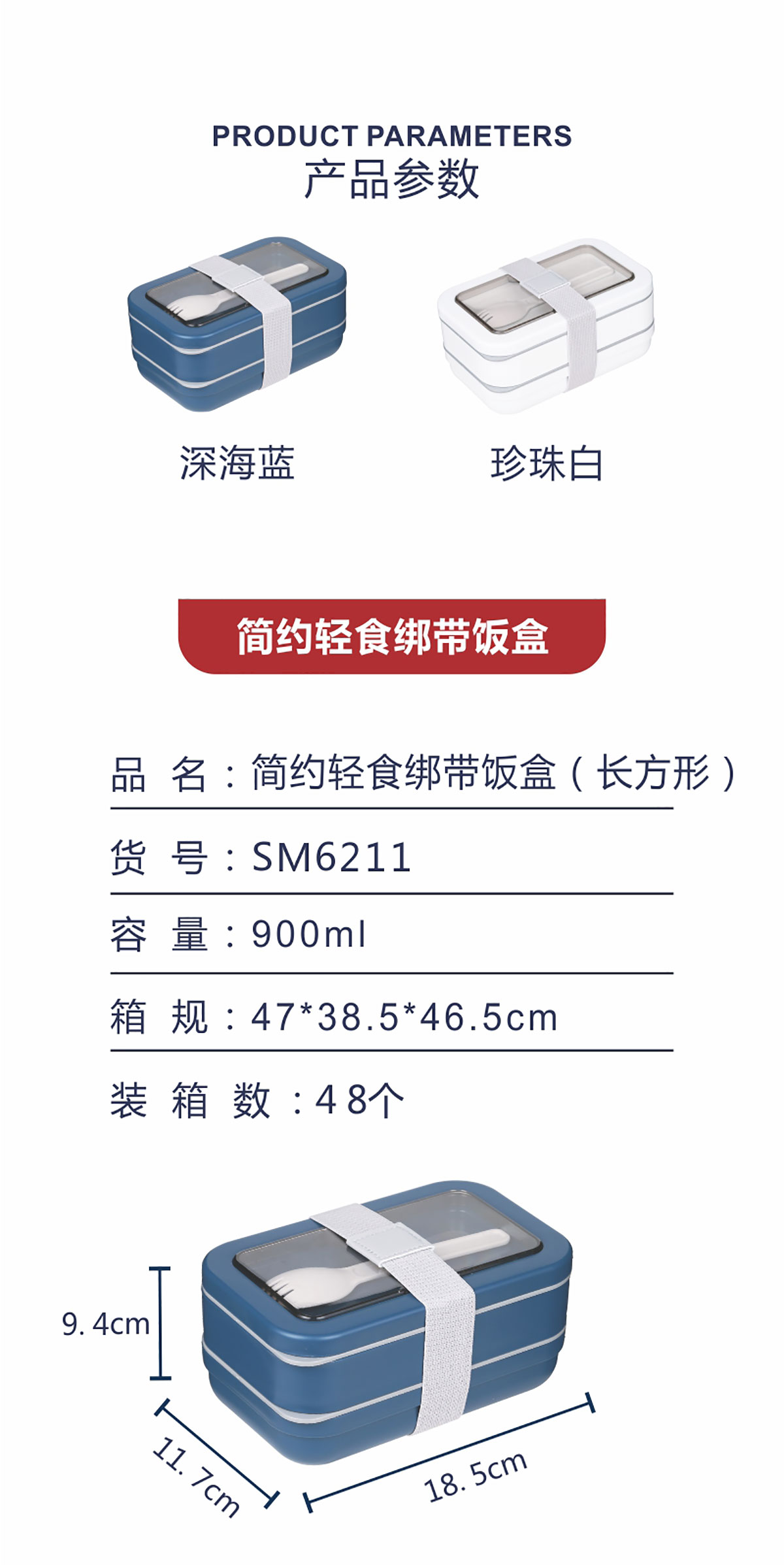簡約輕食綁帶飯盒 (長方形)900ml 22年新色