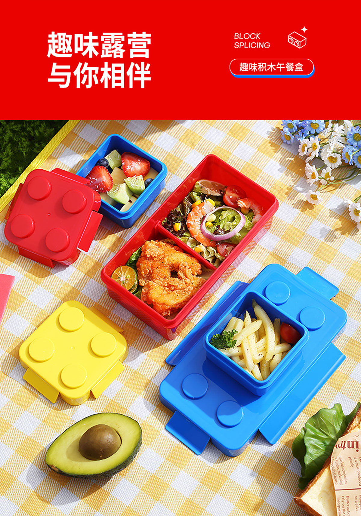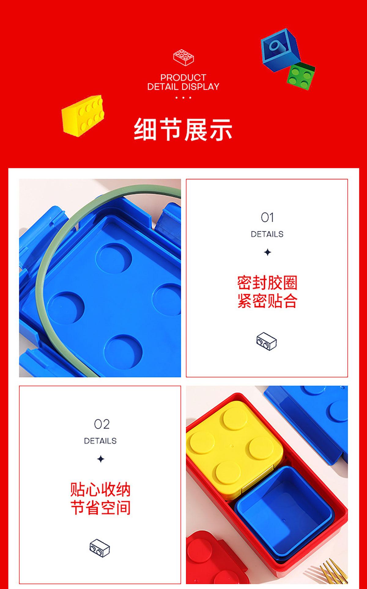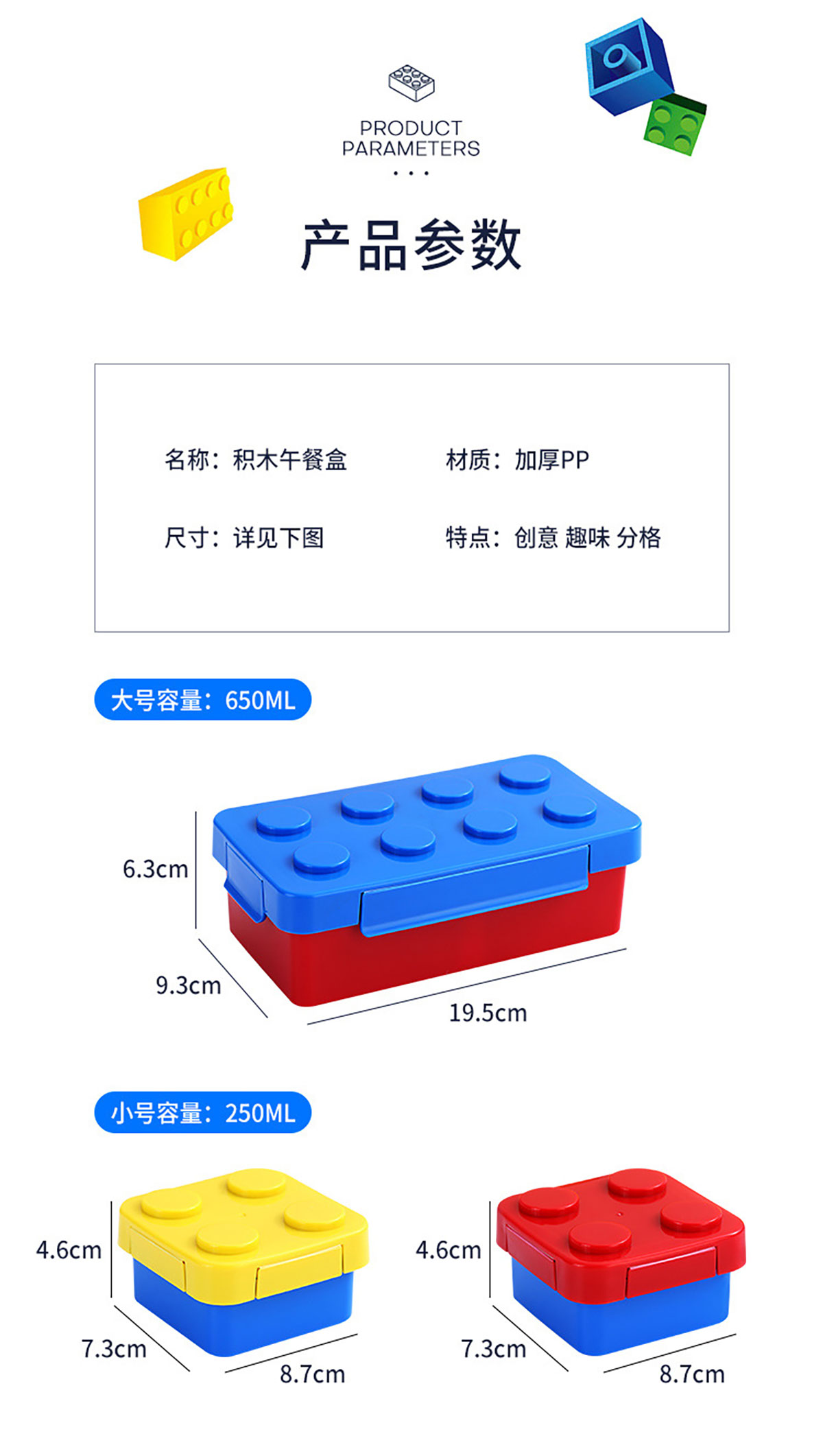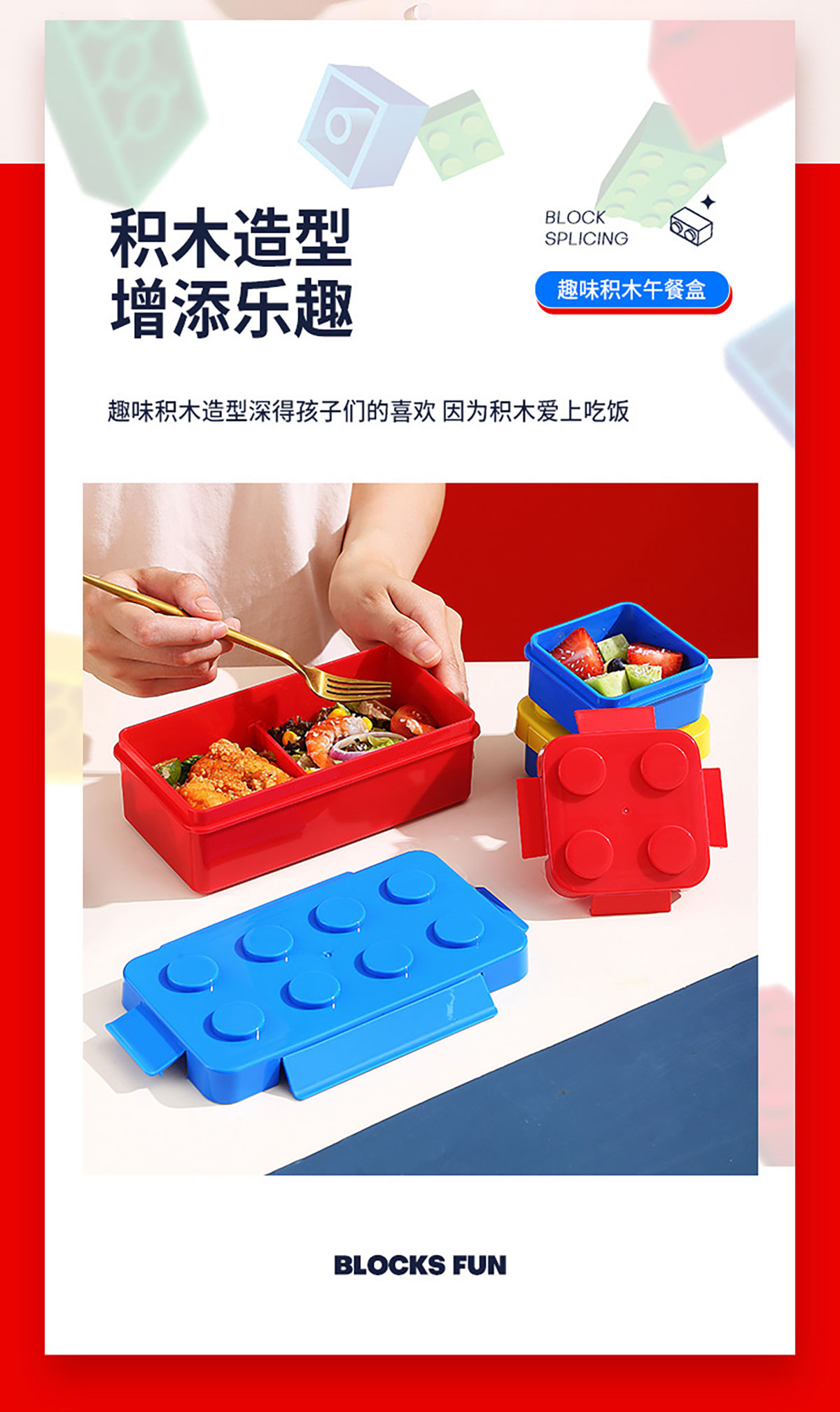 大點(diǎn)積木飯盒(配兩個(gè)分裝盒)1150ml