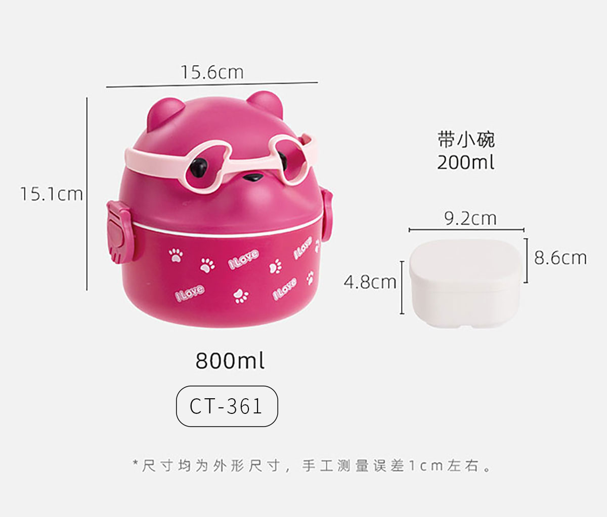 Size: CT-360:156*151mm/800ml CT-361(帶內(nèi)格):156*151mm/800ml 內(nèi)格:92*86*48mm/200ml