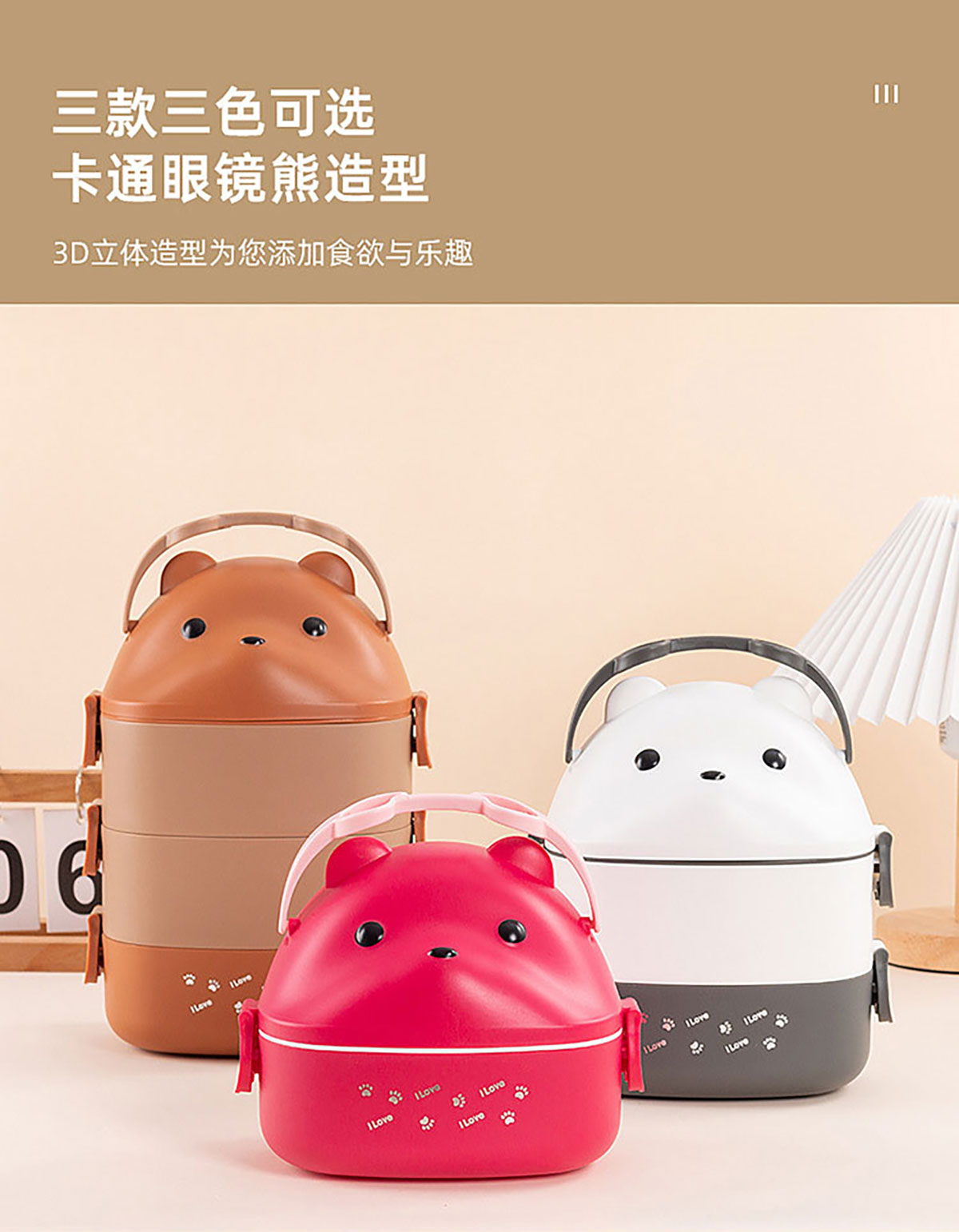 眼鏡熊長方形單層/雙層/三層飯盒 (帶內(nèi)格)