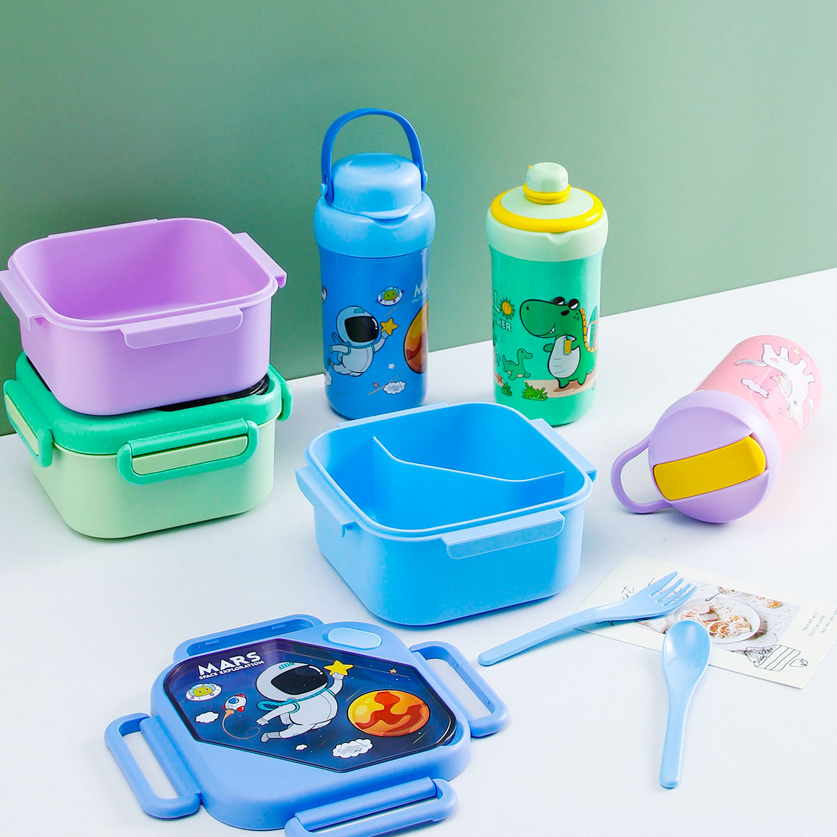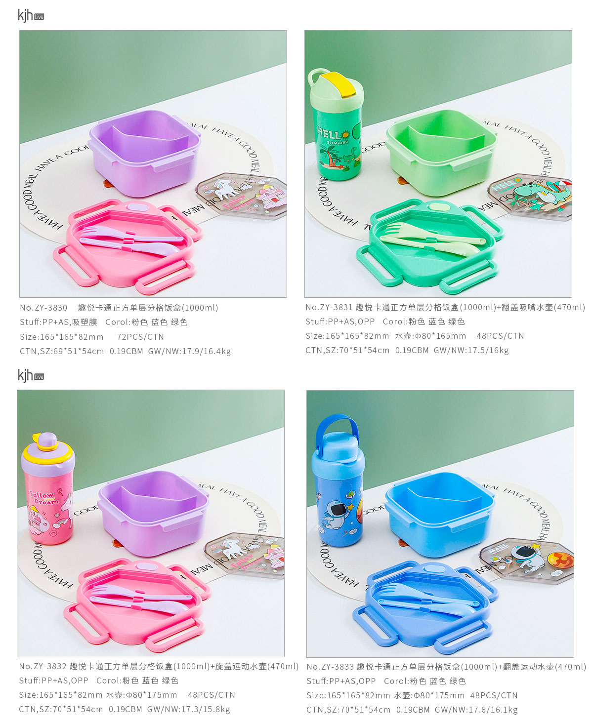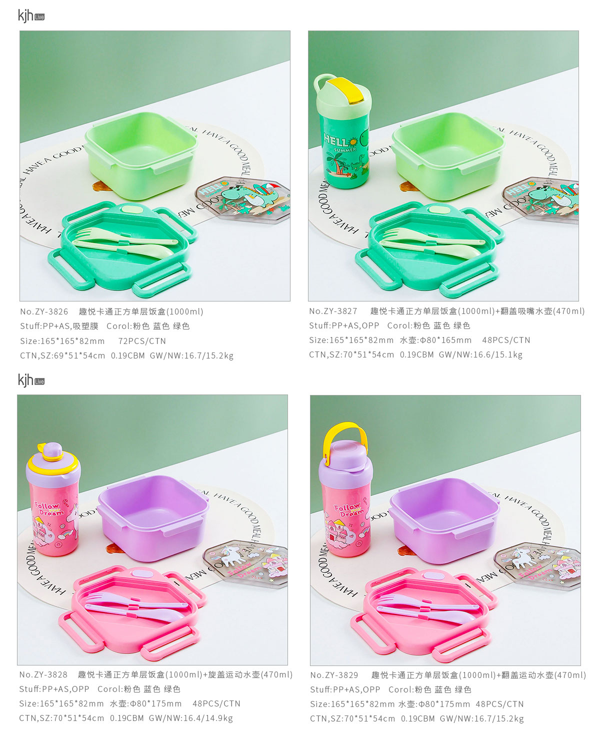趣悅卡通正方單層/分格飯盒+翻蓋吸嘴/旋蓋運(yùn)動/翻蓋運(yùn)動水壺
