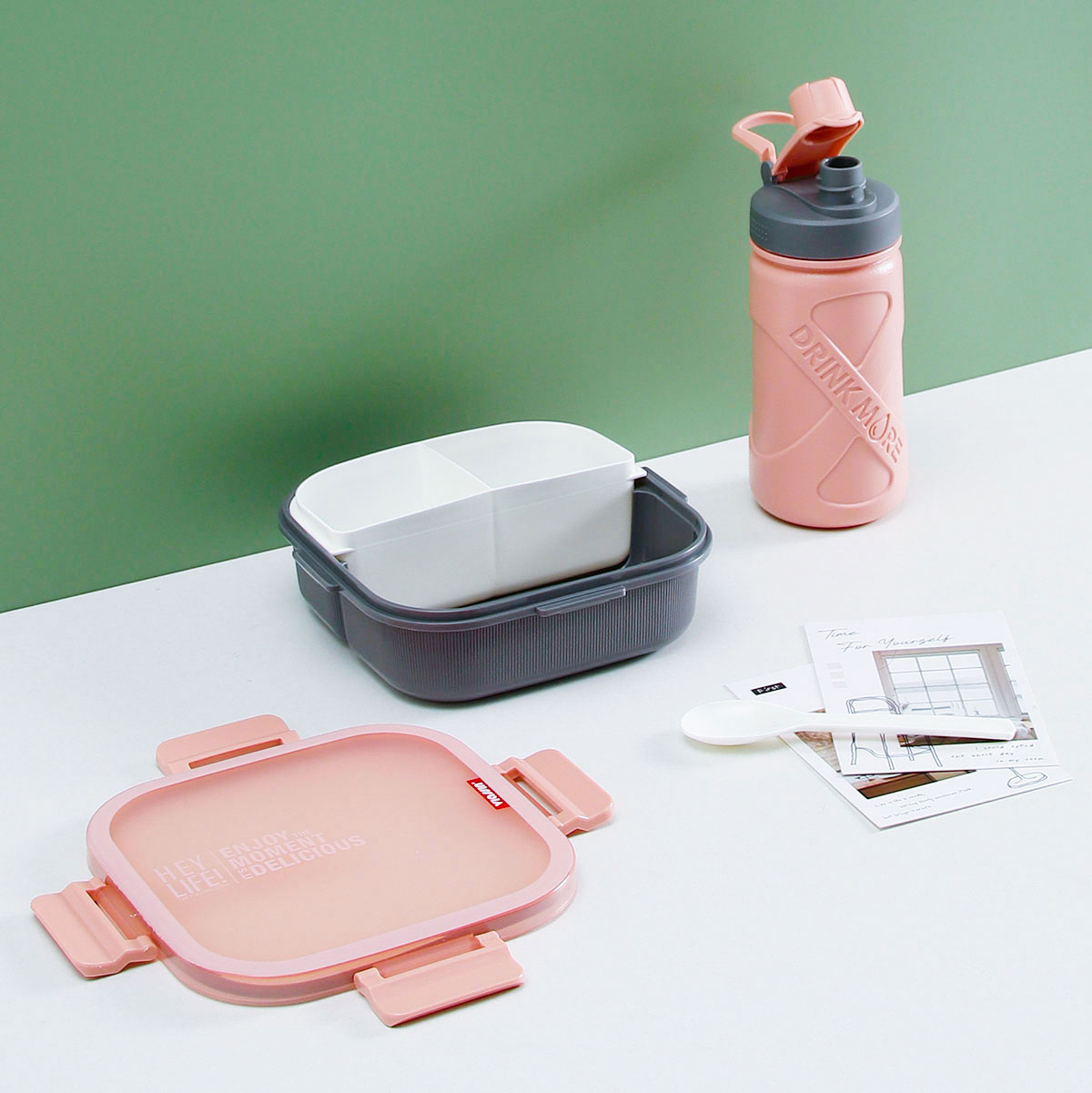 寰彩密封單層3格/雙層6格飯盒(正方款)+運動水壺套裝/單個