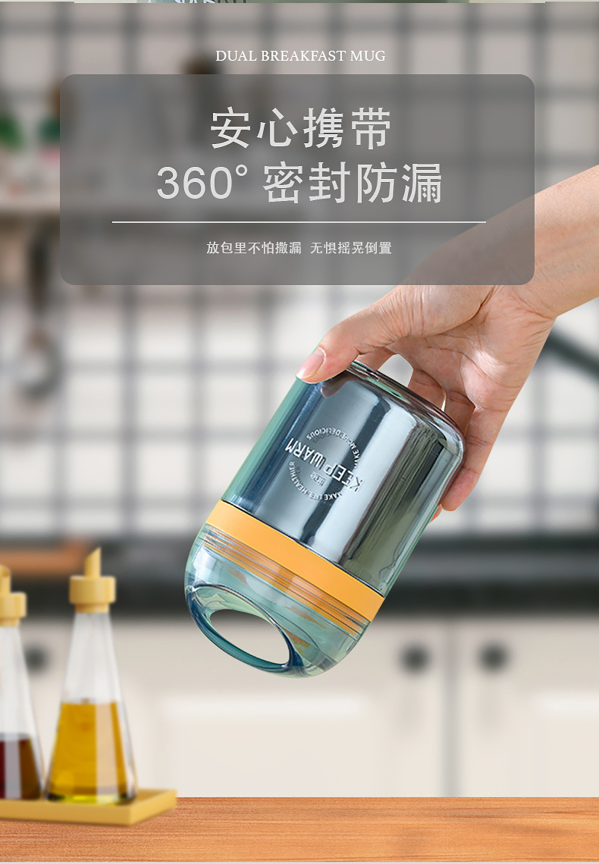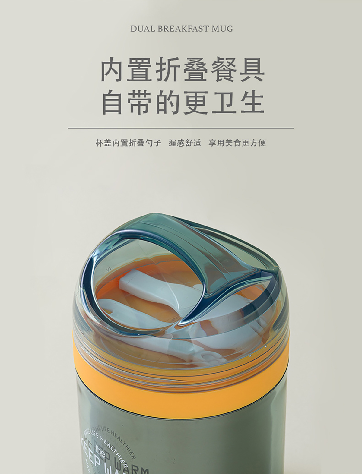 兩用不銹鋼早餐杯304不銹鋼內膽450ml叉勺