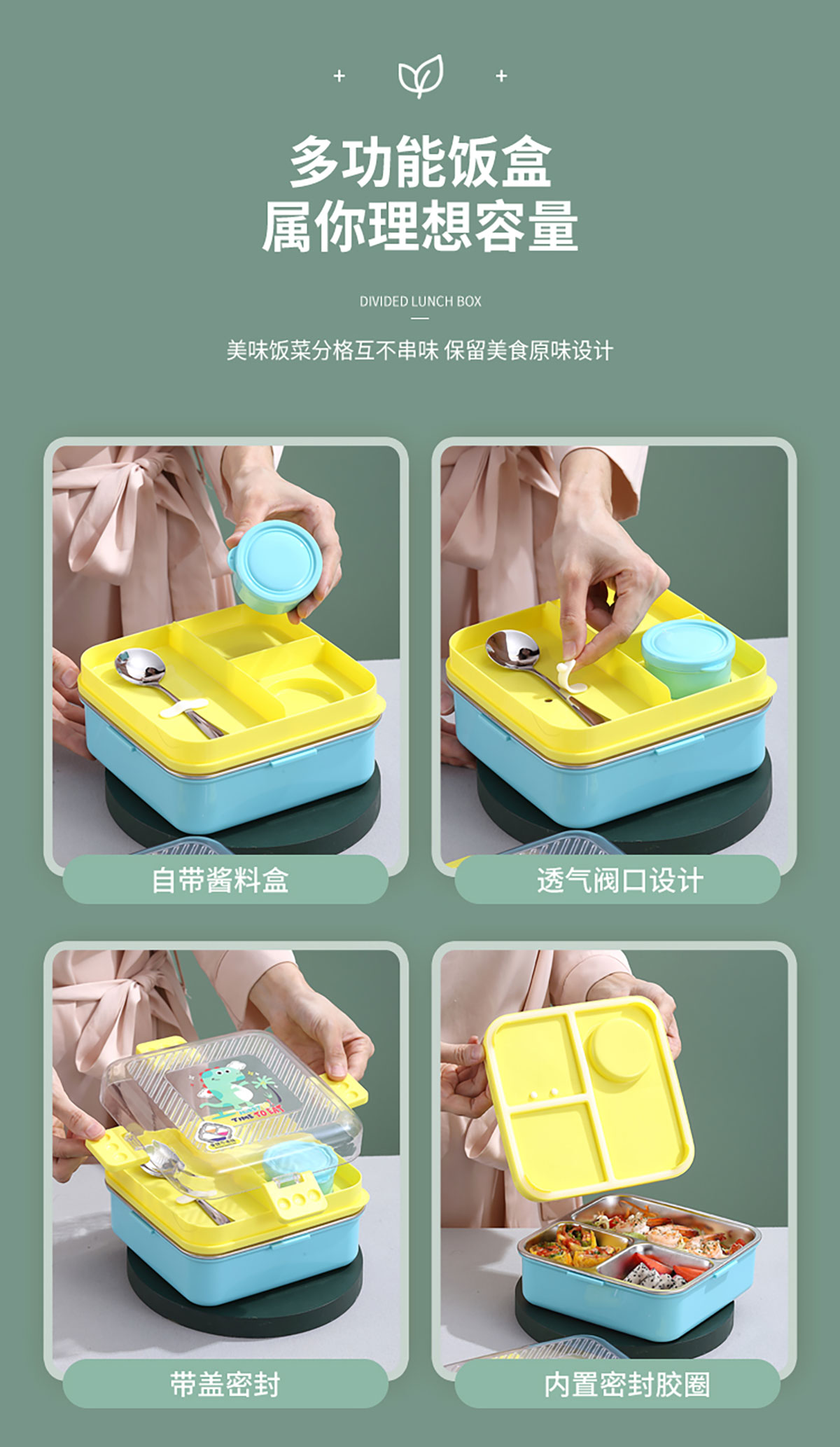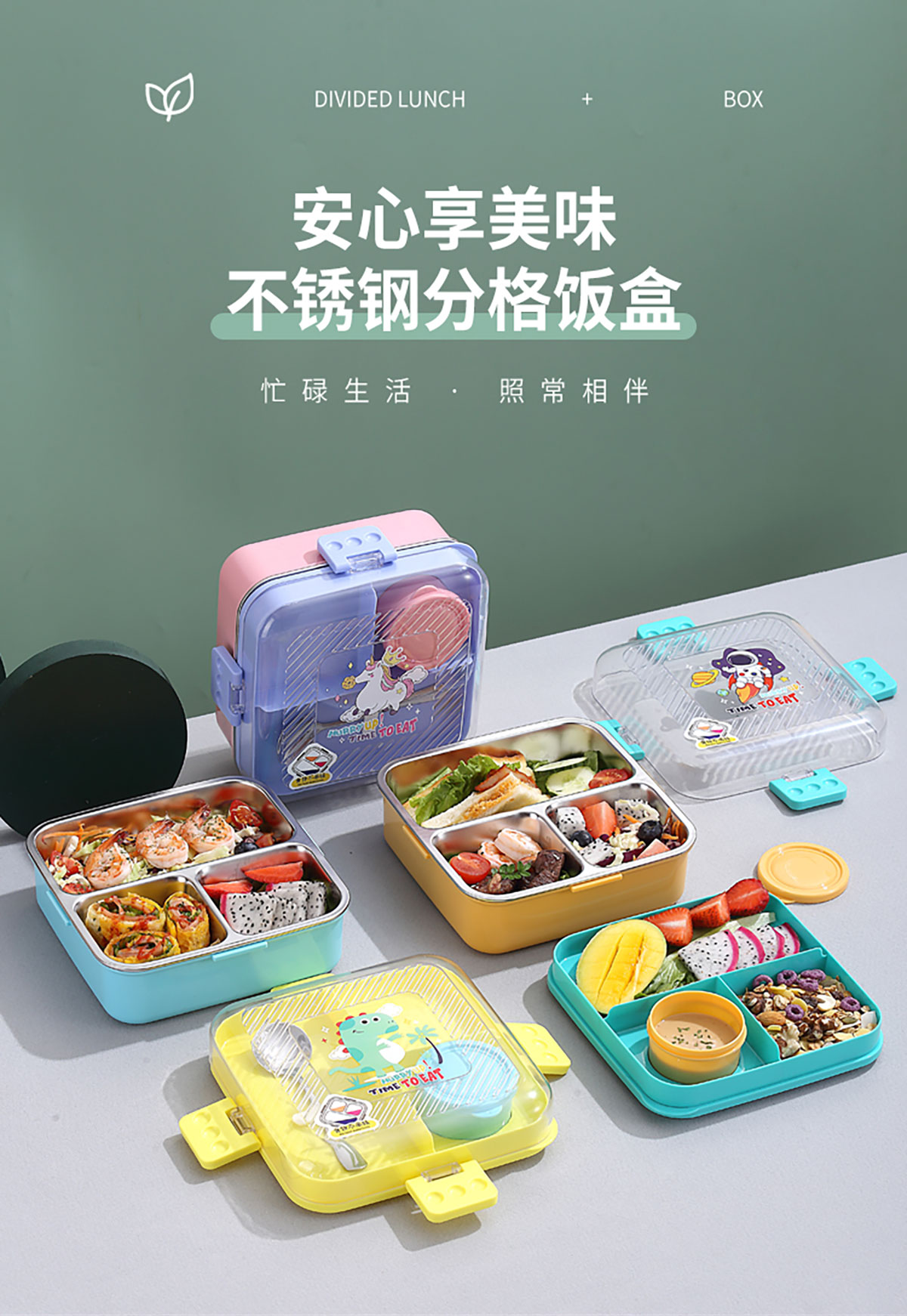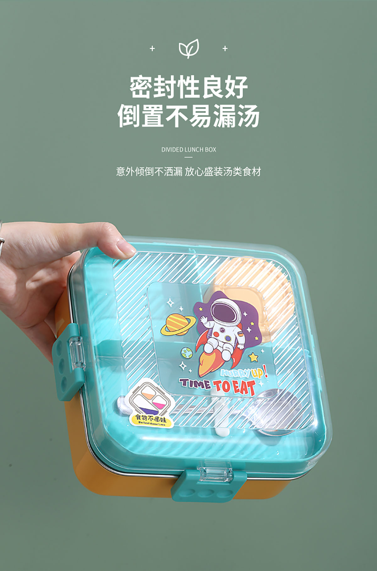 卡通正方形不銹鋼飯盒1120ml+70ml