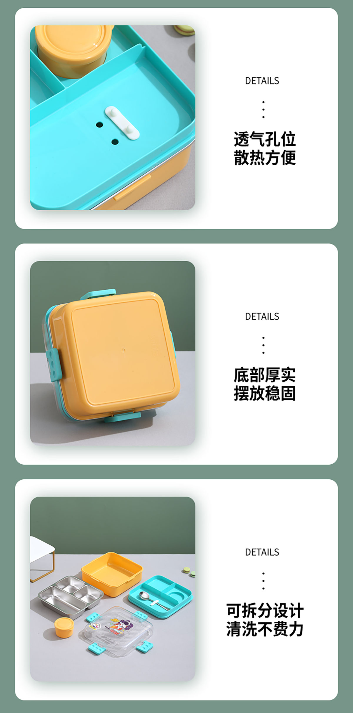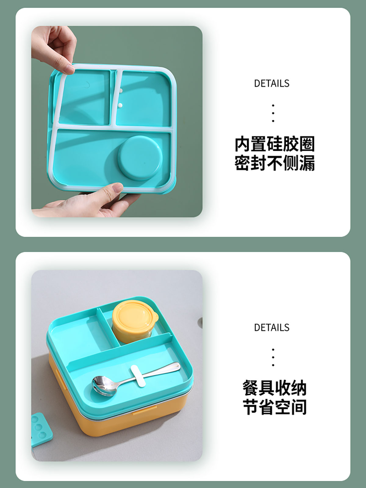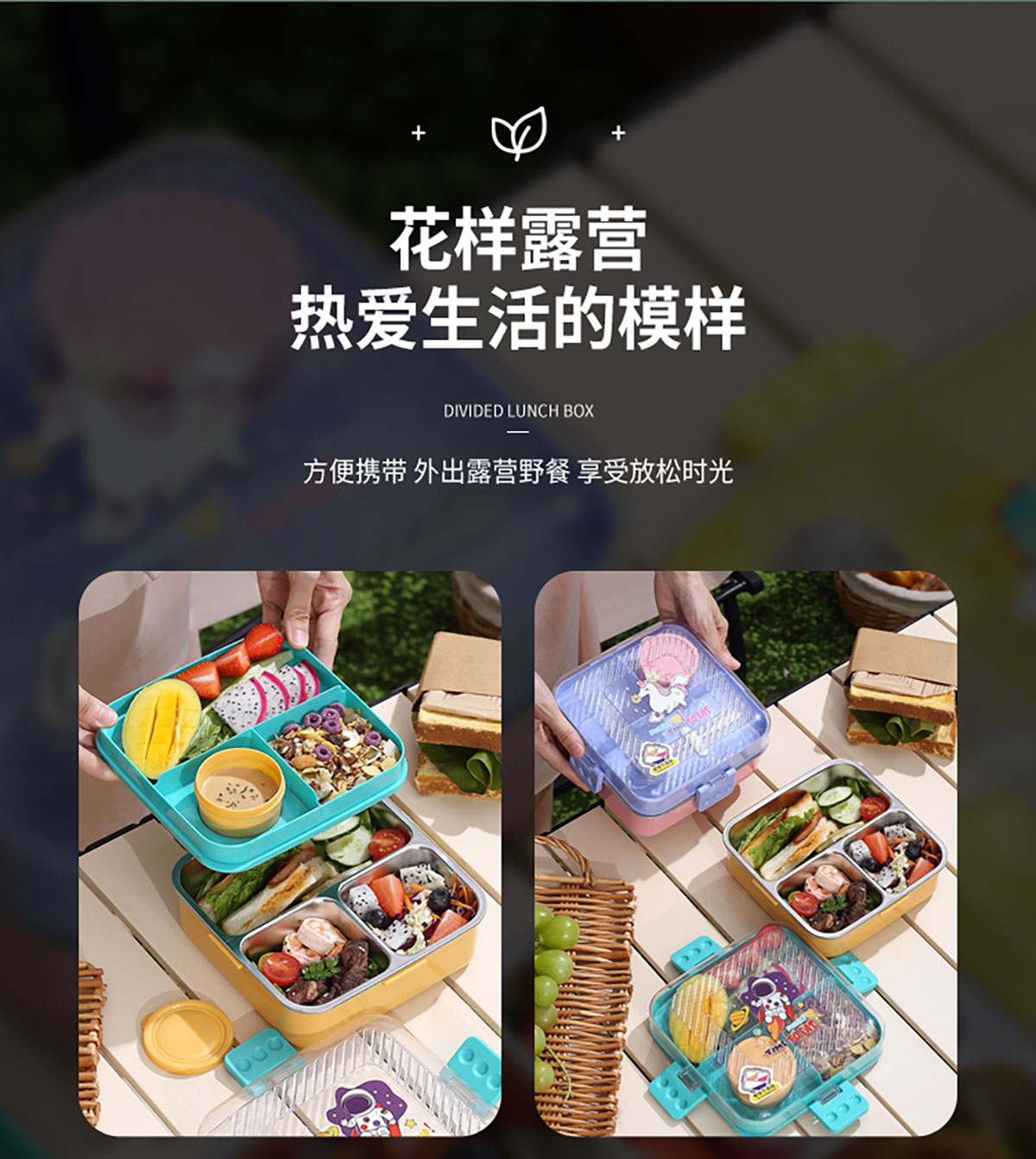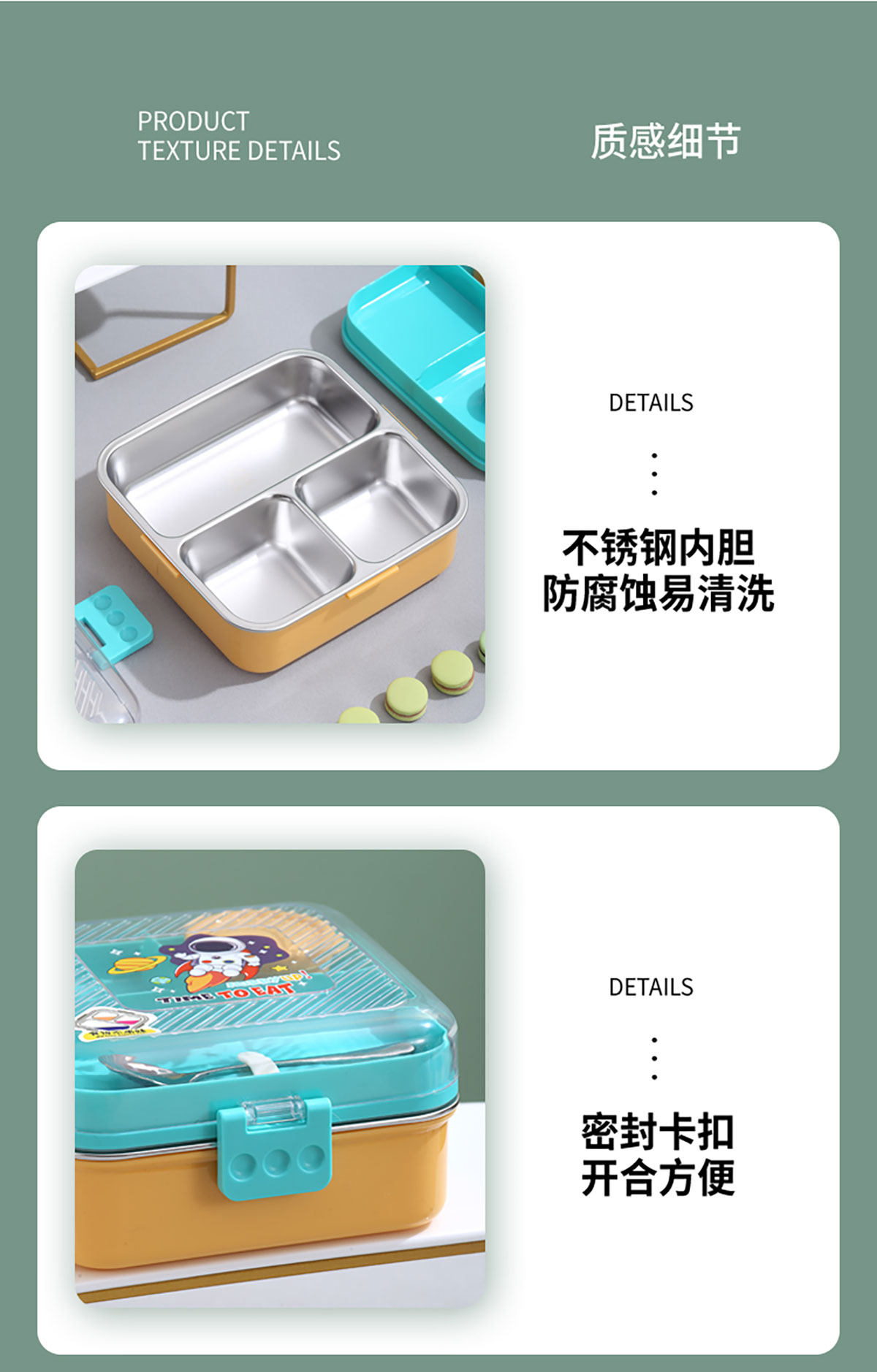 卡通正方形不銹鋼飯盒1120ml+70ml