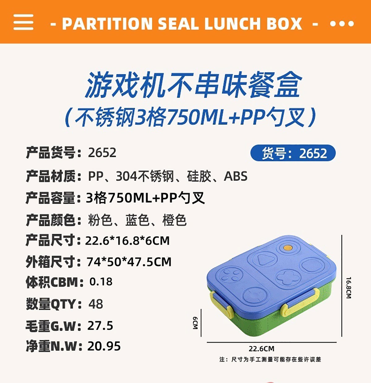 Size: AQX-2651(2格):227*177*65mm AQX-2652(3格):227*177*65mm