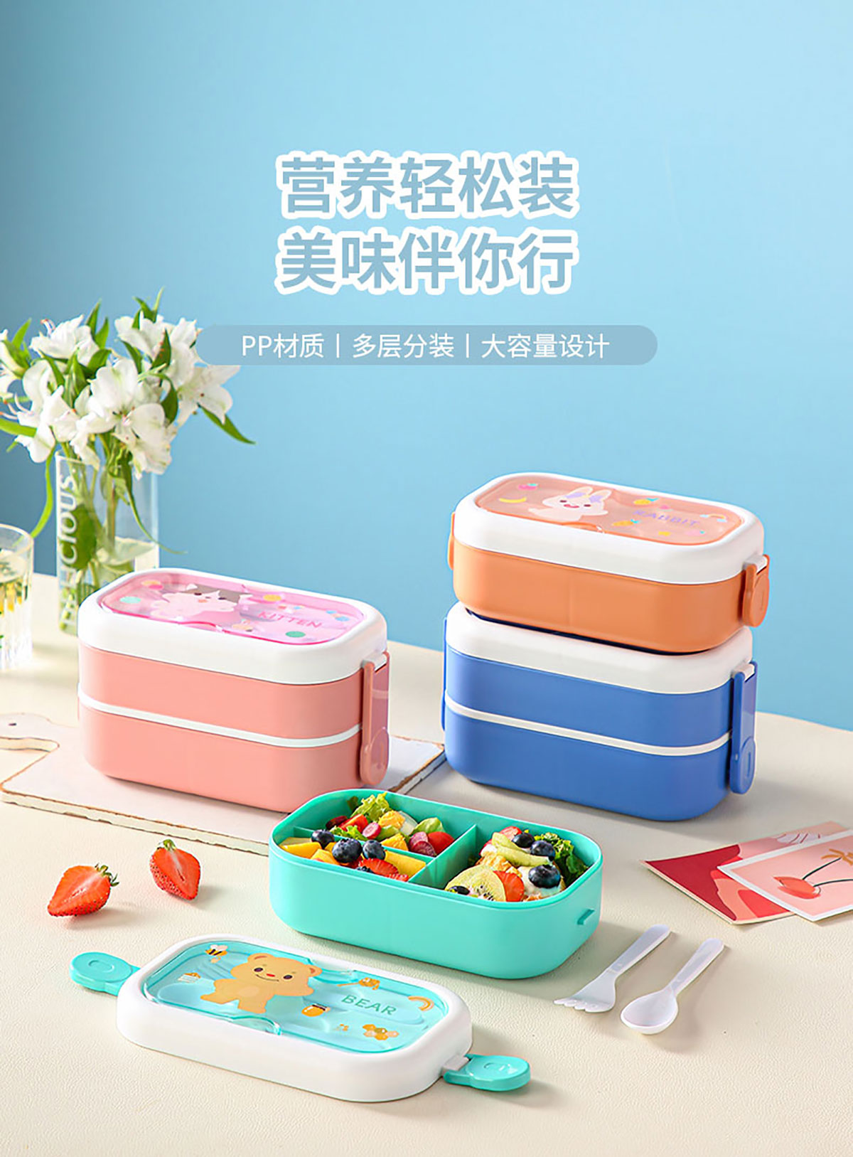 樂(lè)派卡通飯盒(單層/雙層/單層套裝)