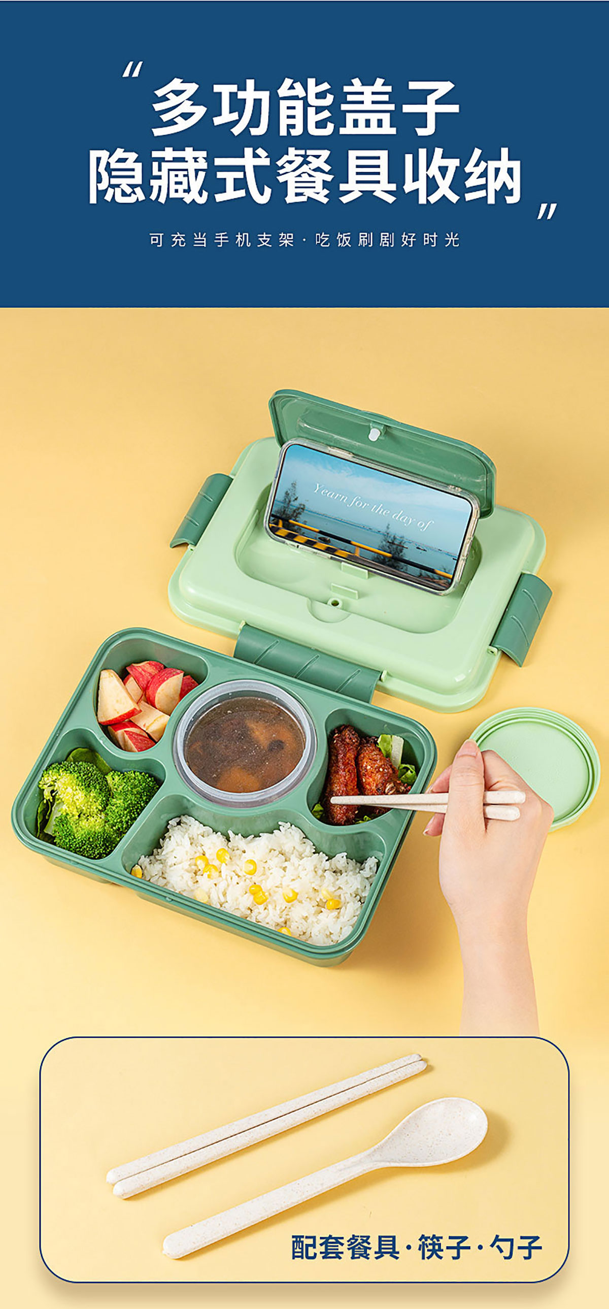 Size: SHX-2256(四格帶湯碗):飯盒:260*190*80mm 湯碗:Φ90*60mm/250ml