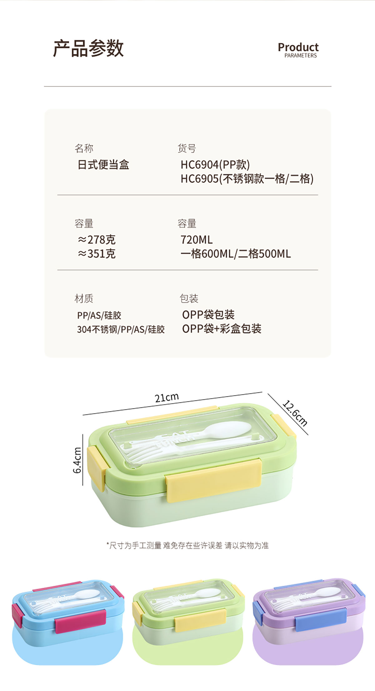 SWY-HC6904(PP款三格):210*126*64mm/740ml