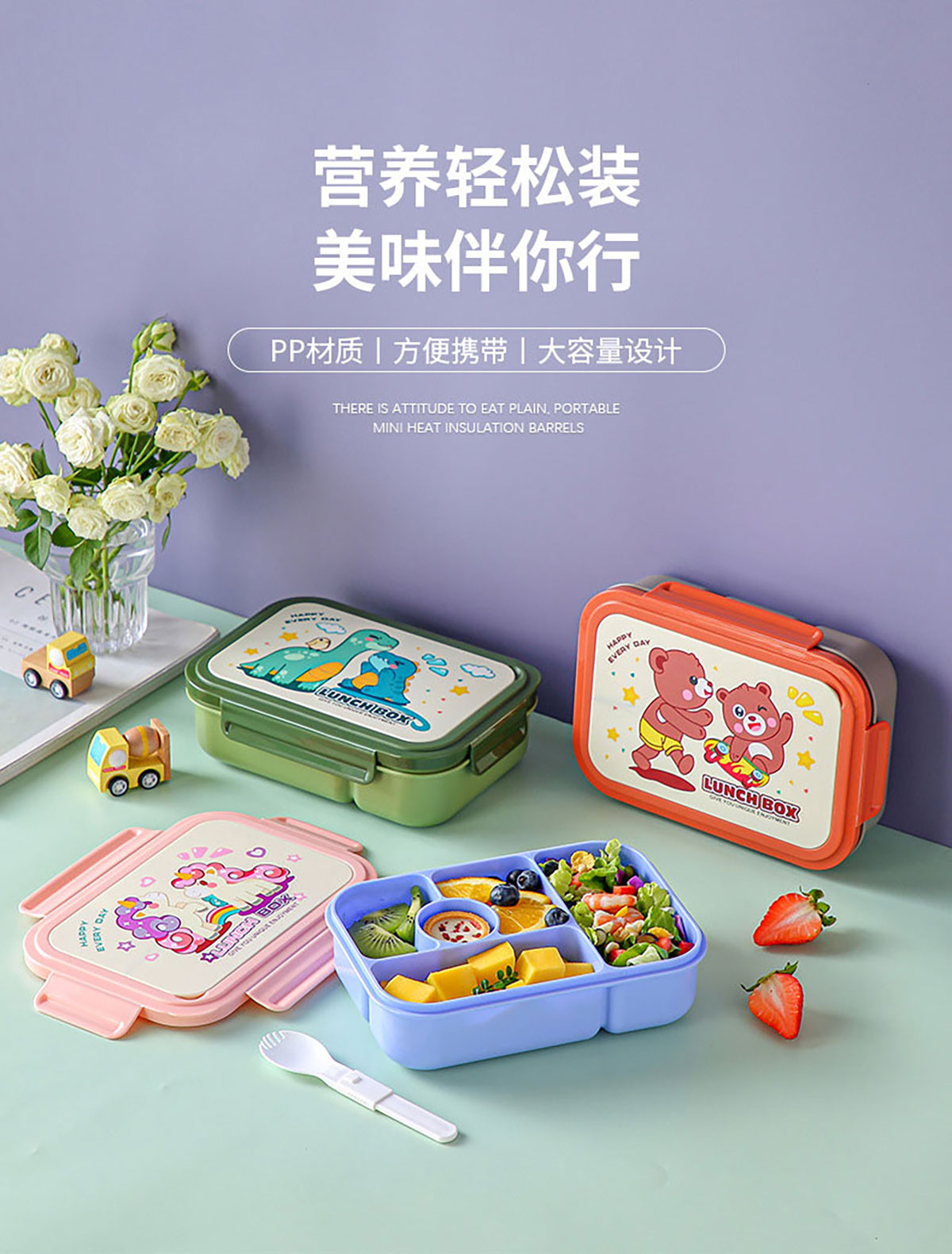 五格卡通便當盒1.25L