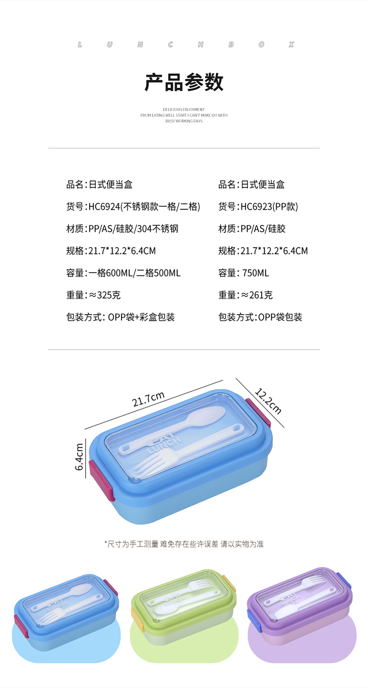 Size: SWY-HC6923(PP款二格):217*122*64mm/750ml