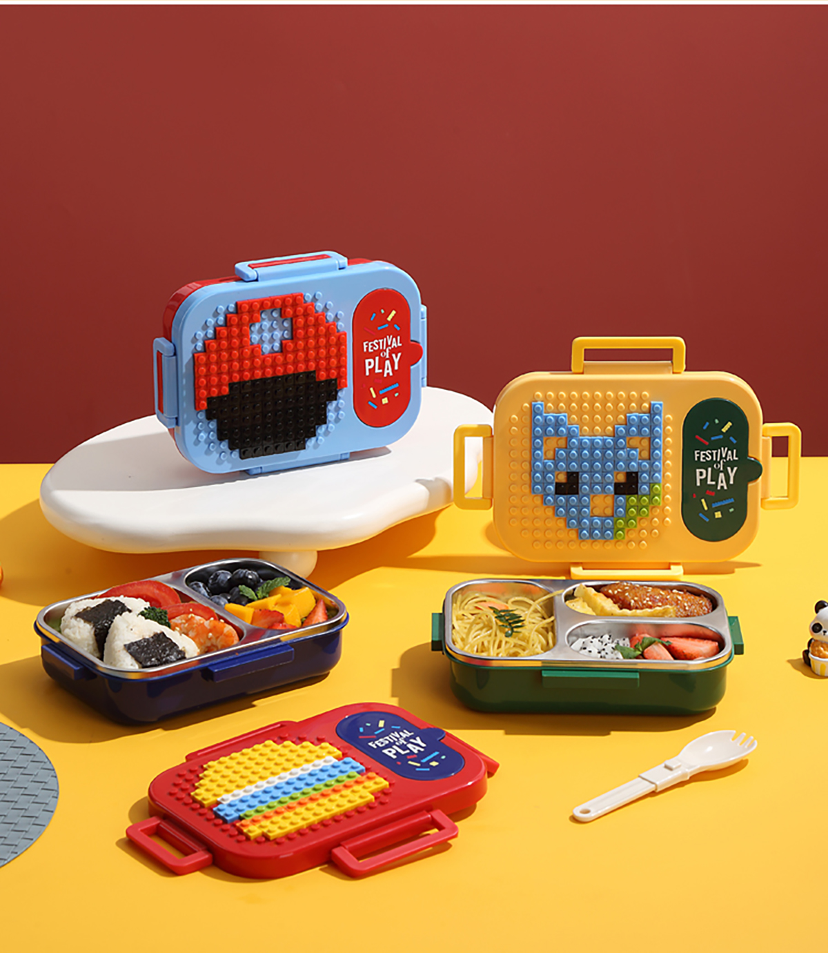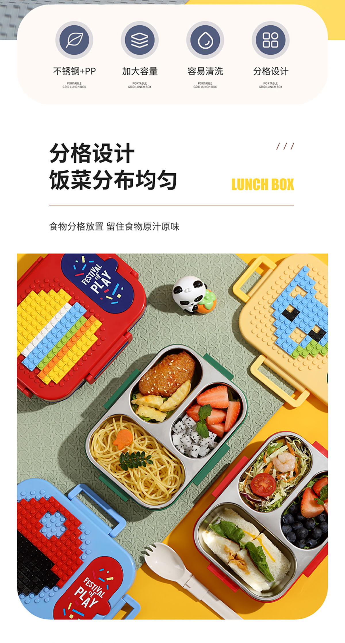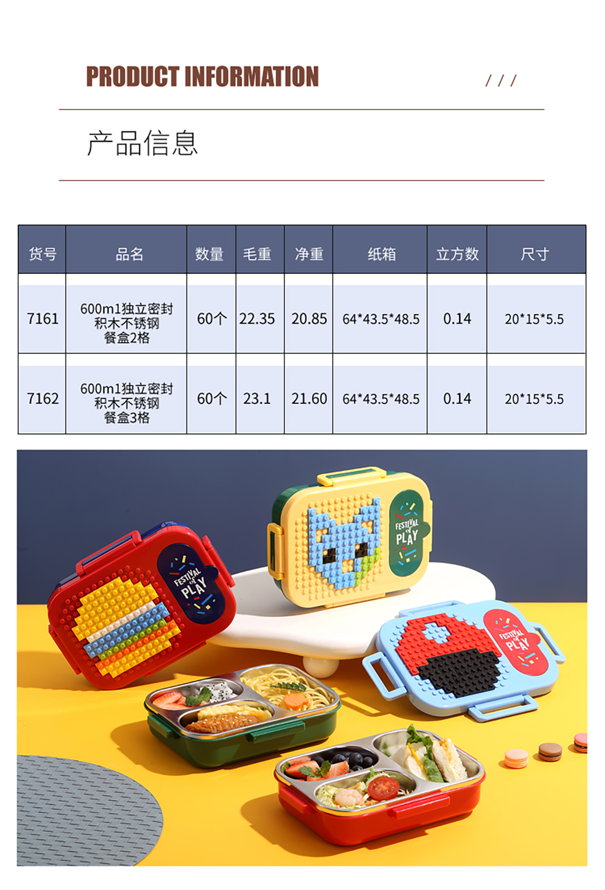 600ml 獨(dú)立密封積木不銹鋼餐盒2格/3格 (配PP折疊湯勺)