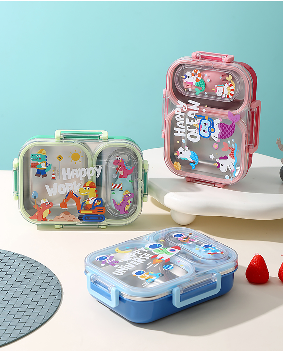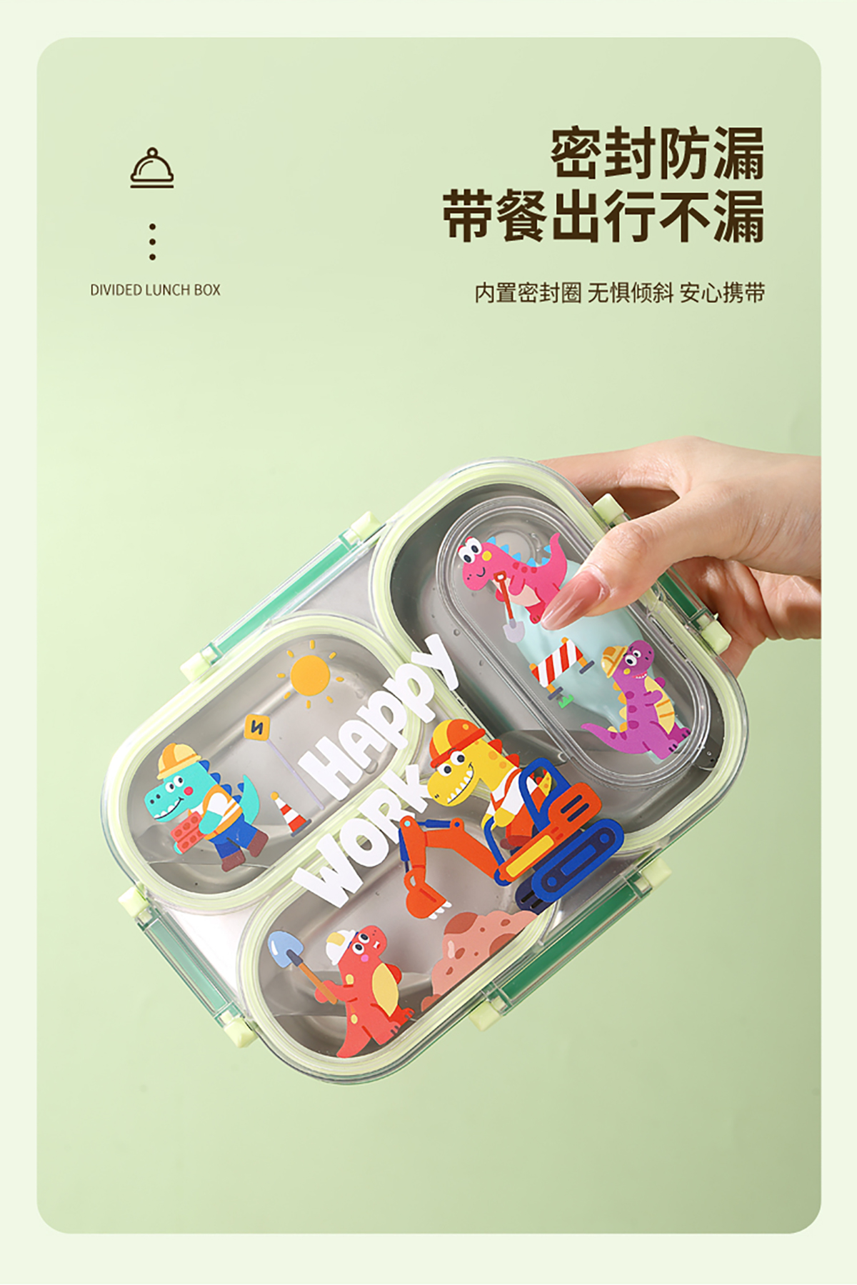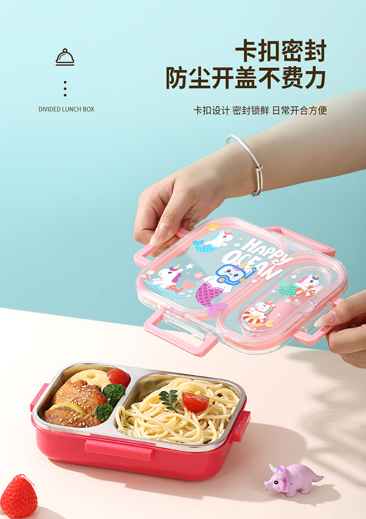 600ml UV獨立密封卡通不銹鋼餐盒2格/3格 (配PP折疊湯勺)