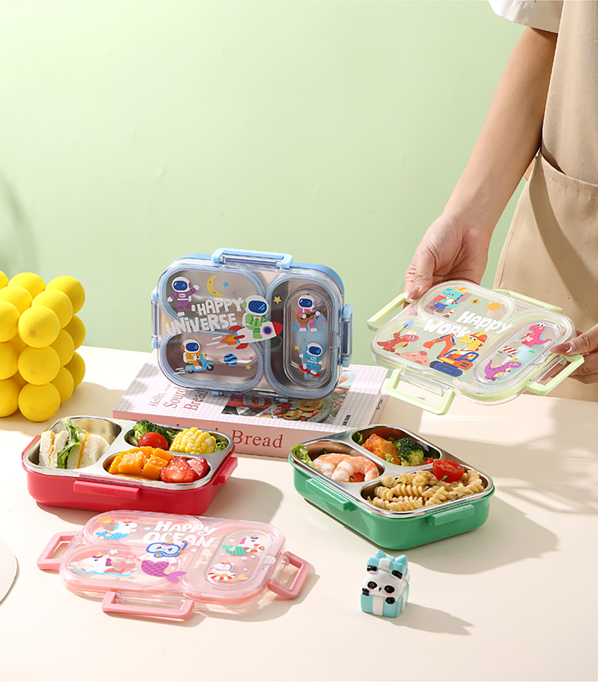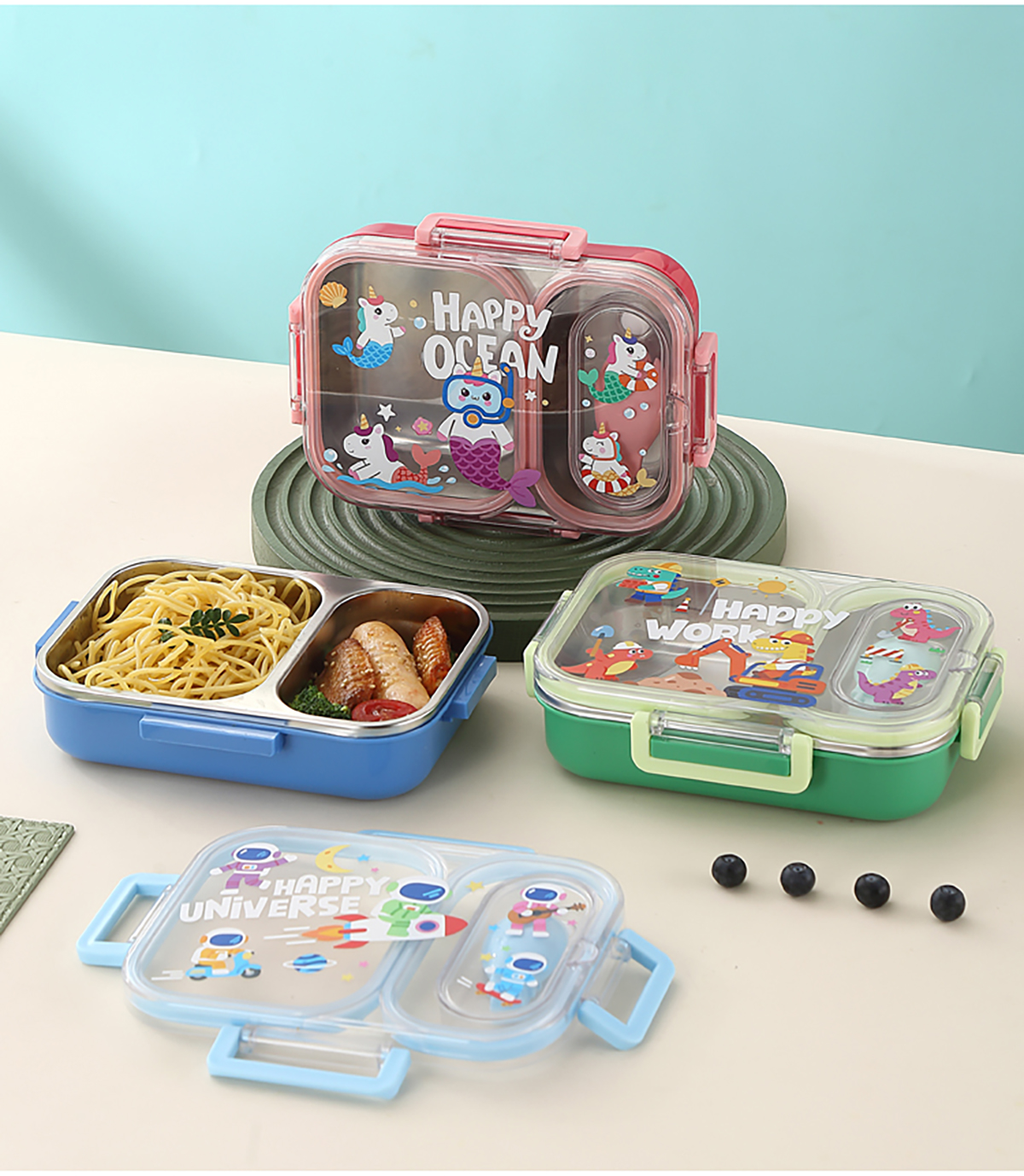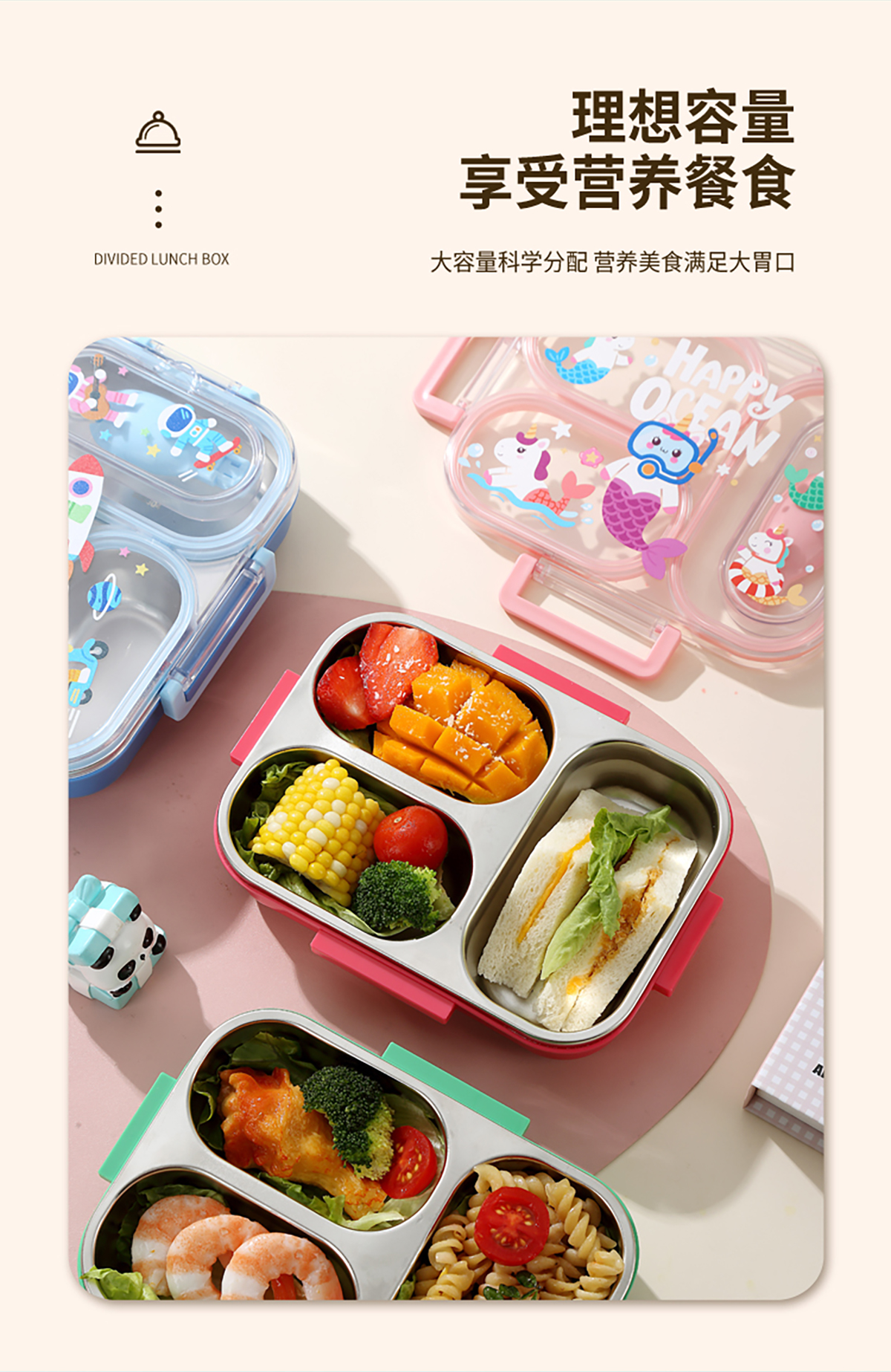 600ml UV獨立密封卡通不銹鋼餐盒2格/3格 (配PP折疊湯勺)