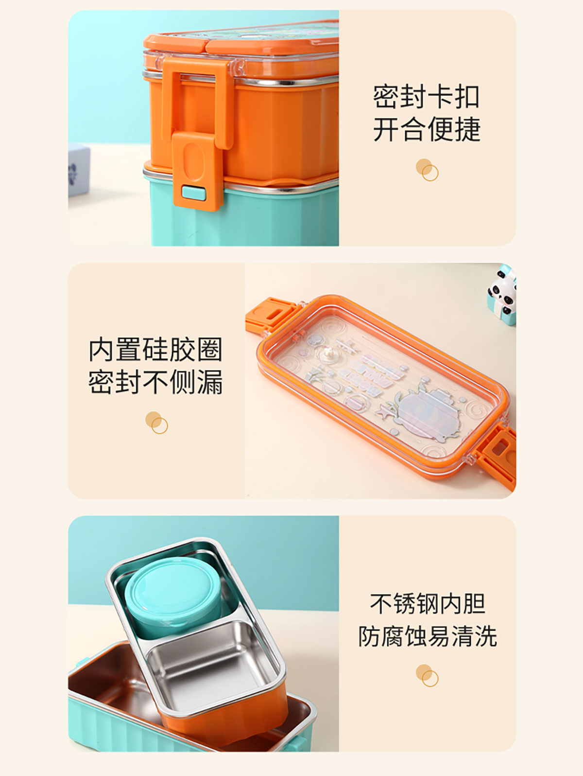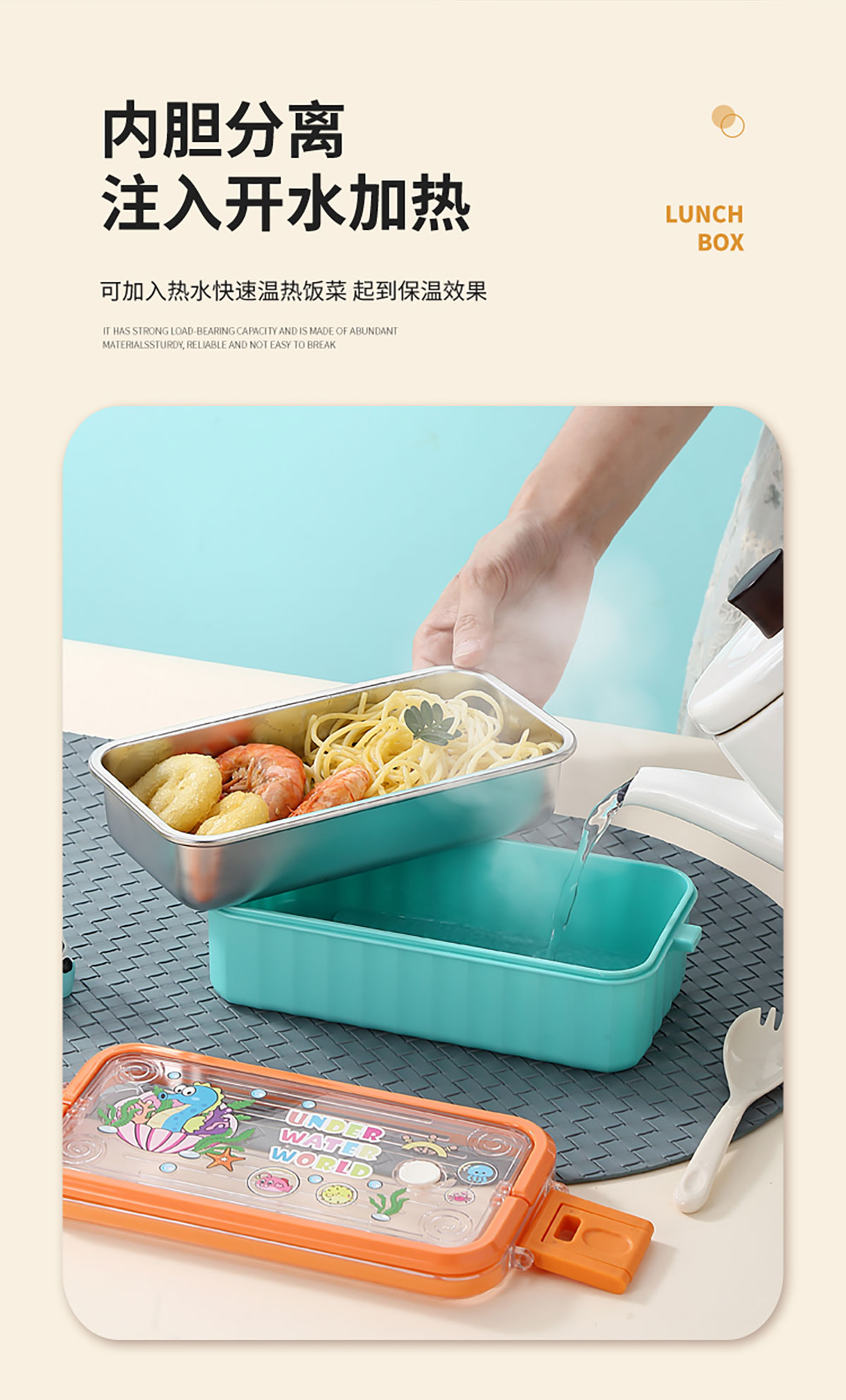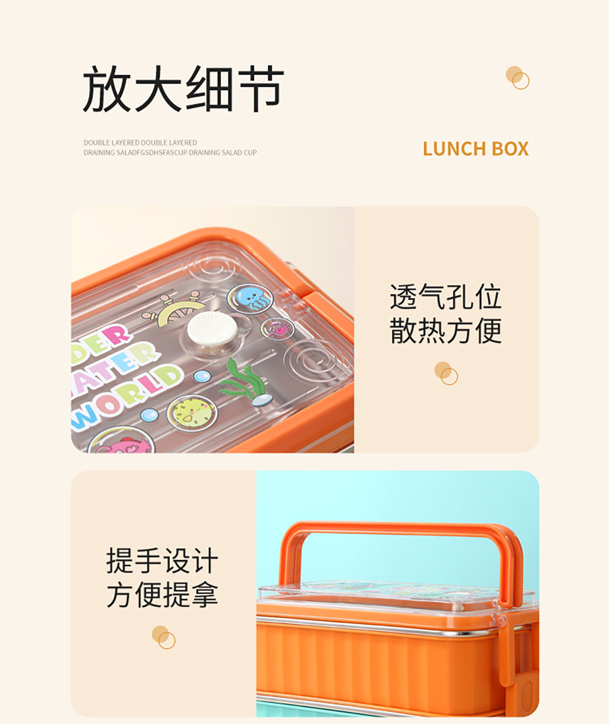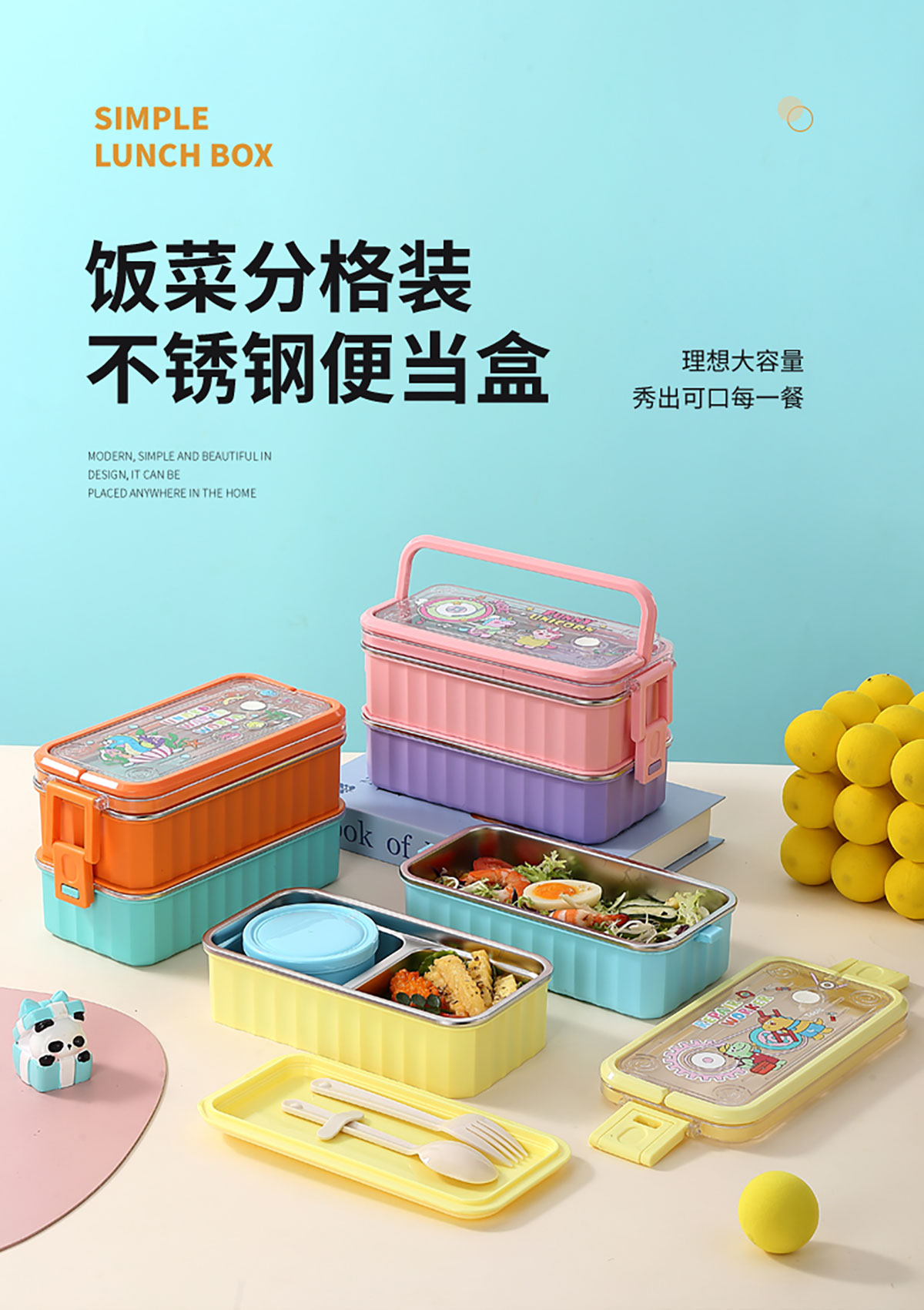 UV 手提單層/雙層卡通不銹鋼餐盒(配PP叉勺+PP湯碗150ml)