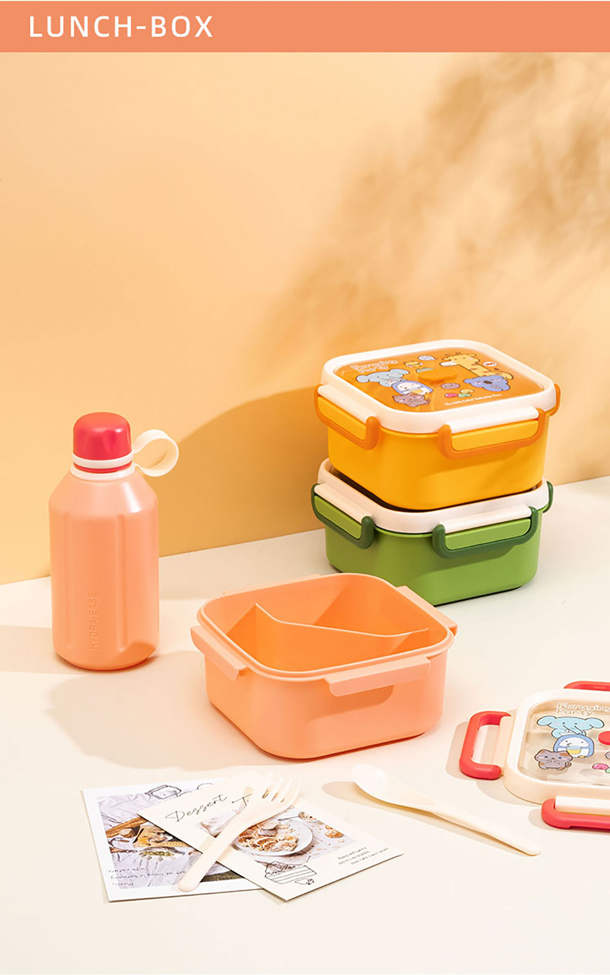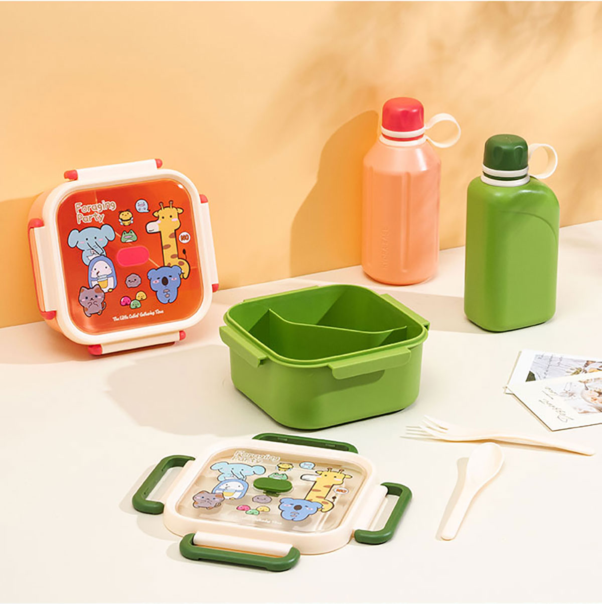 尚趣正方單層分格飯盒(1000ml)/+圓形/方形運(yùn)動(dòng)水壺(500ml)
