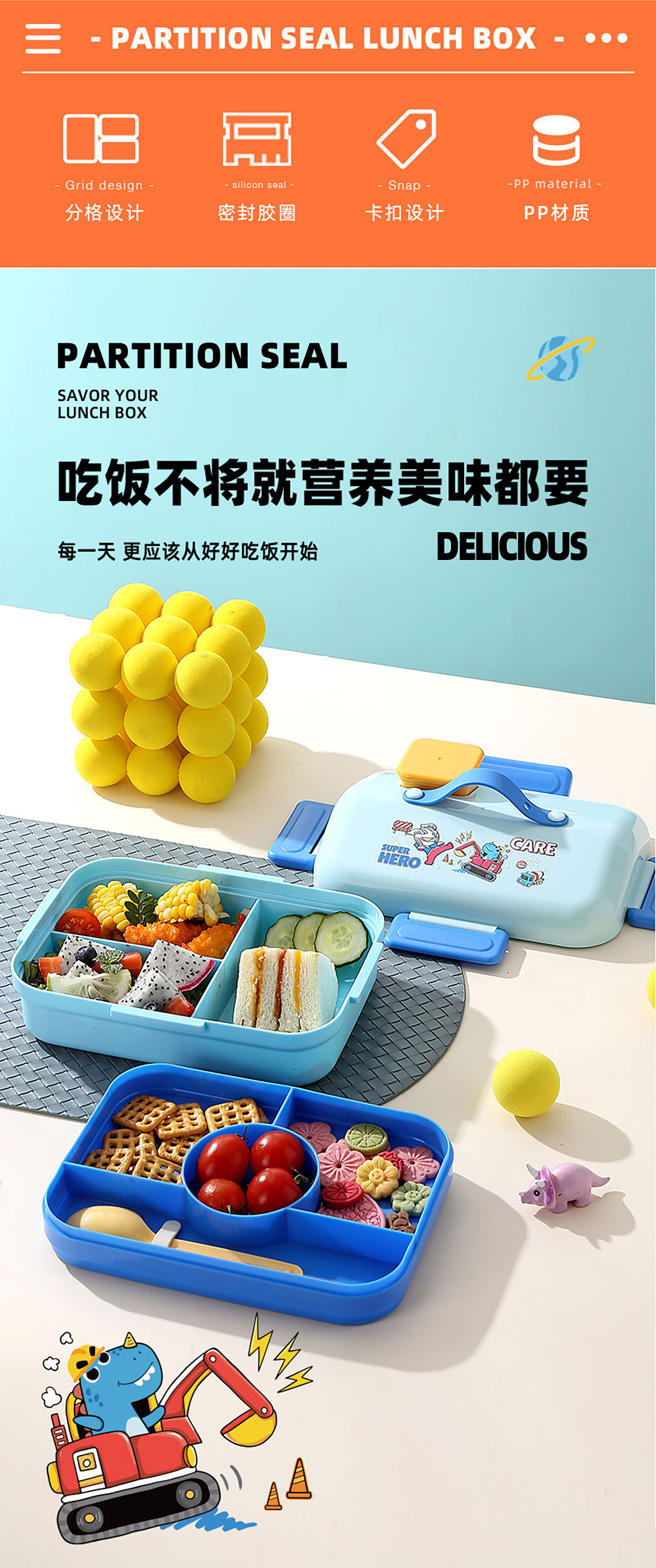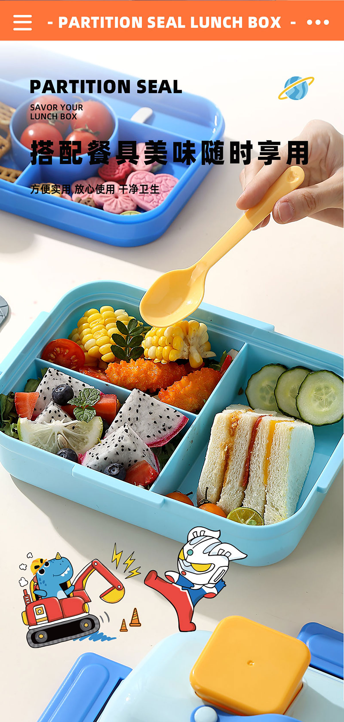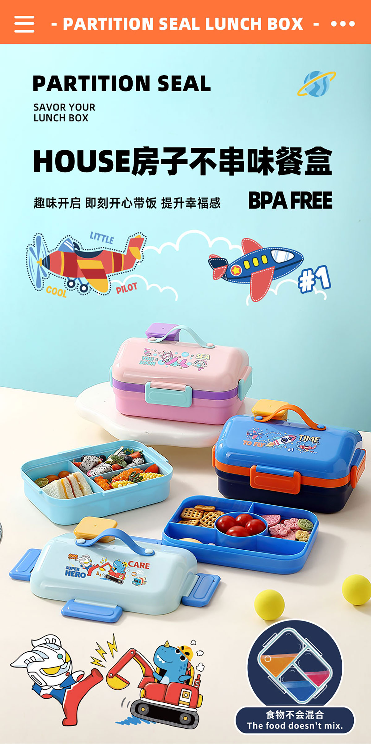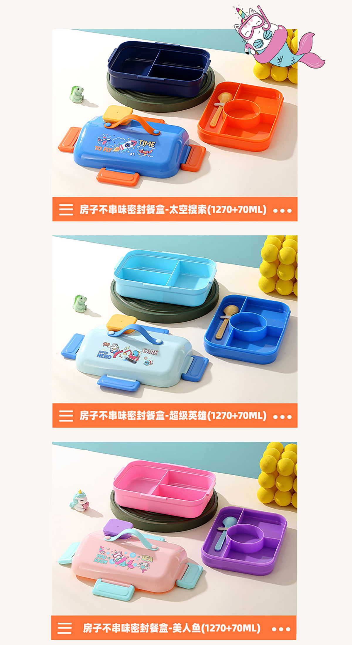 HOUSE房子不串味餐盒(長方形塑料3格1270ml+碗70ml+PP勺)