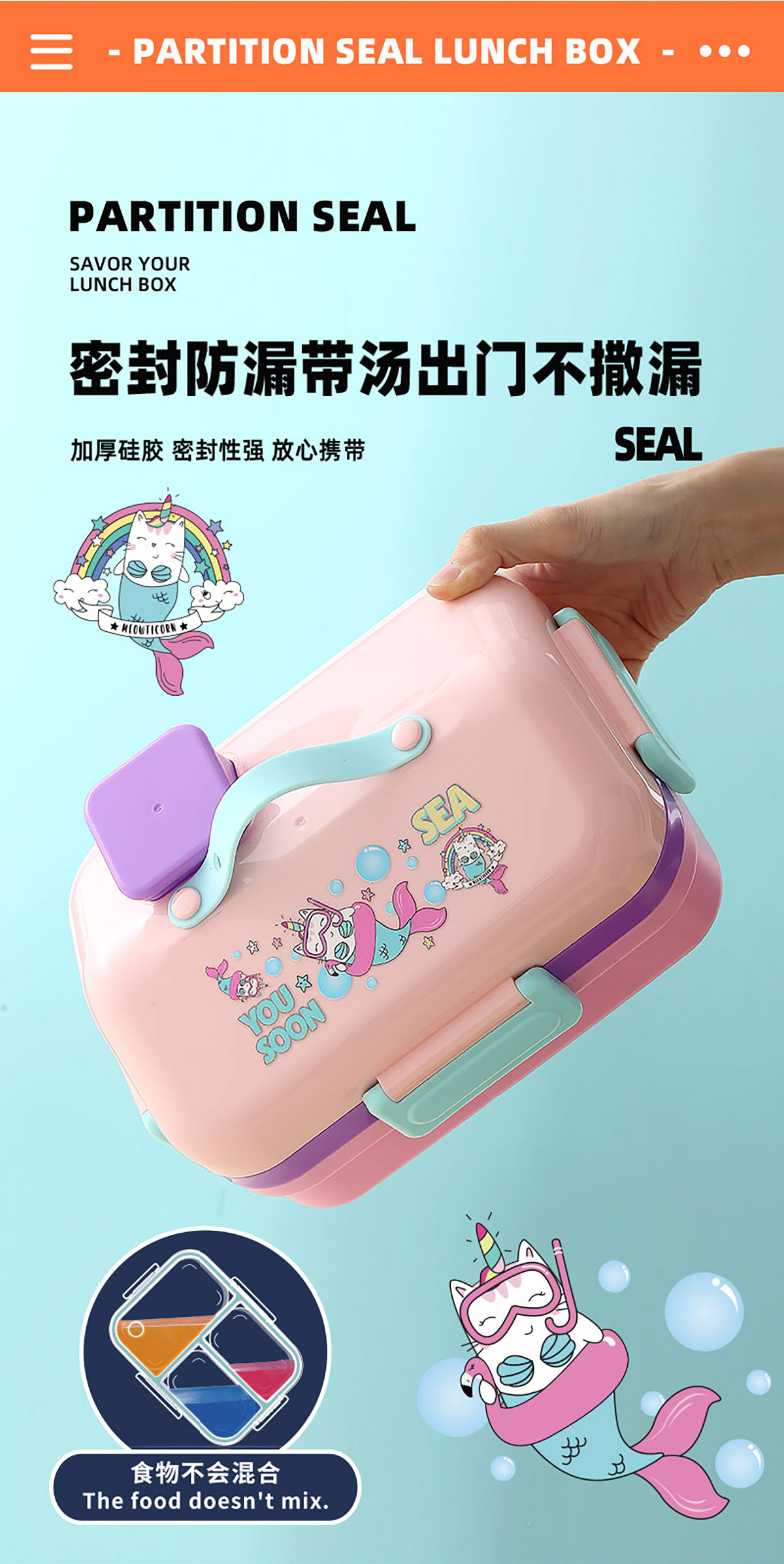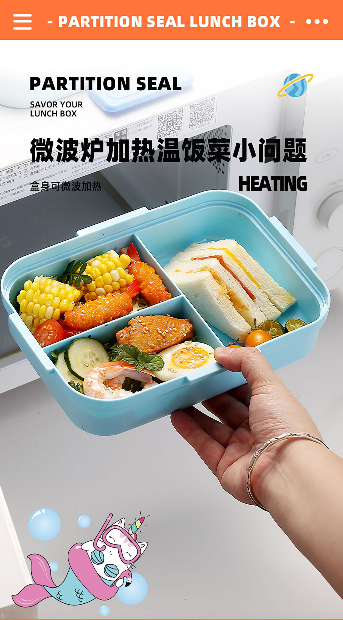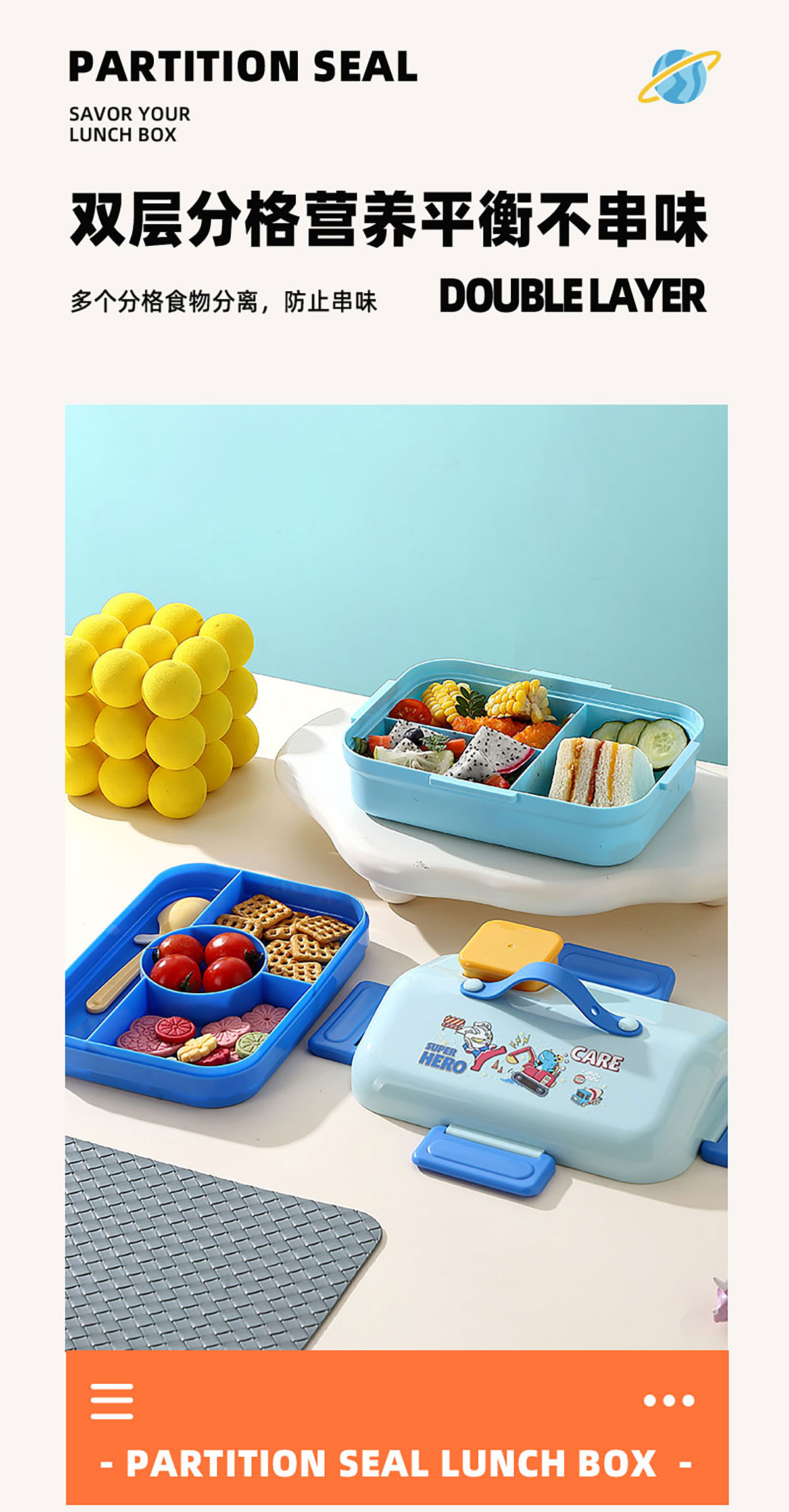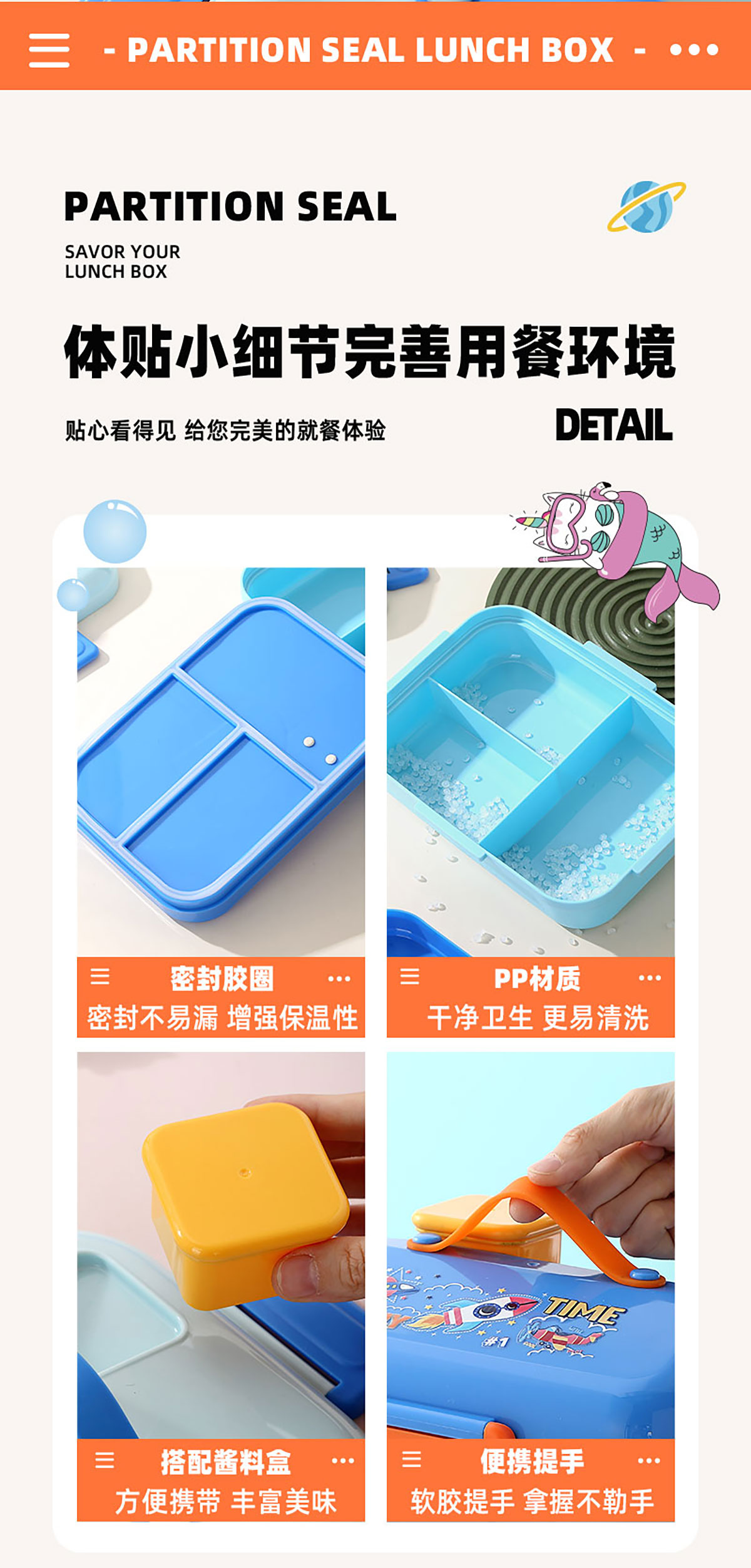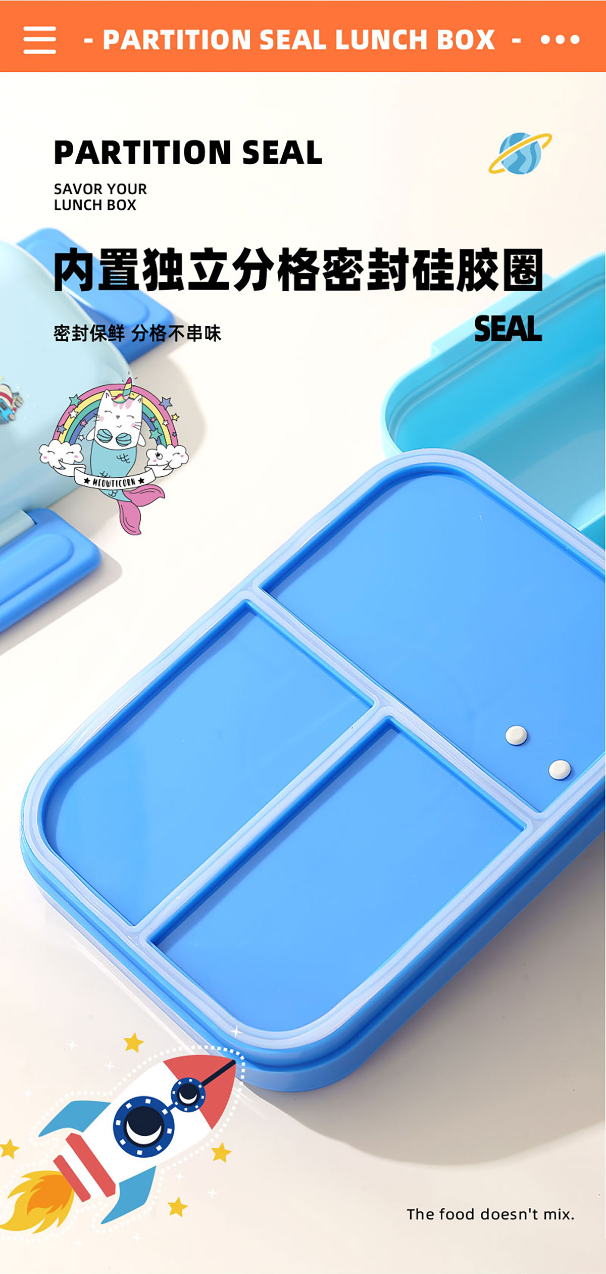 HOUSE房子不串味餐盒(長方形塑料3格1270ml+碗70ml+PP勺)