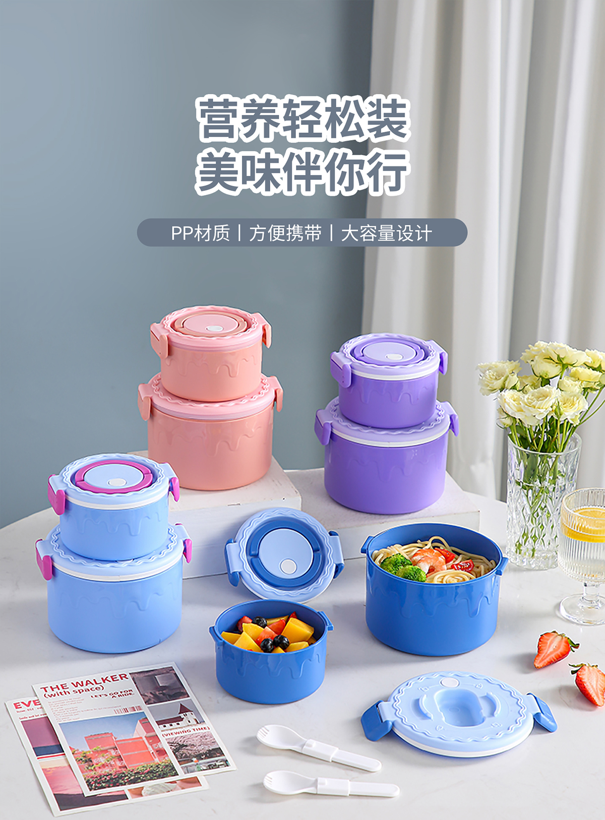蛋糕圓形塑料雙層飯盒1000ml+380ml