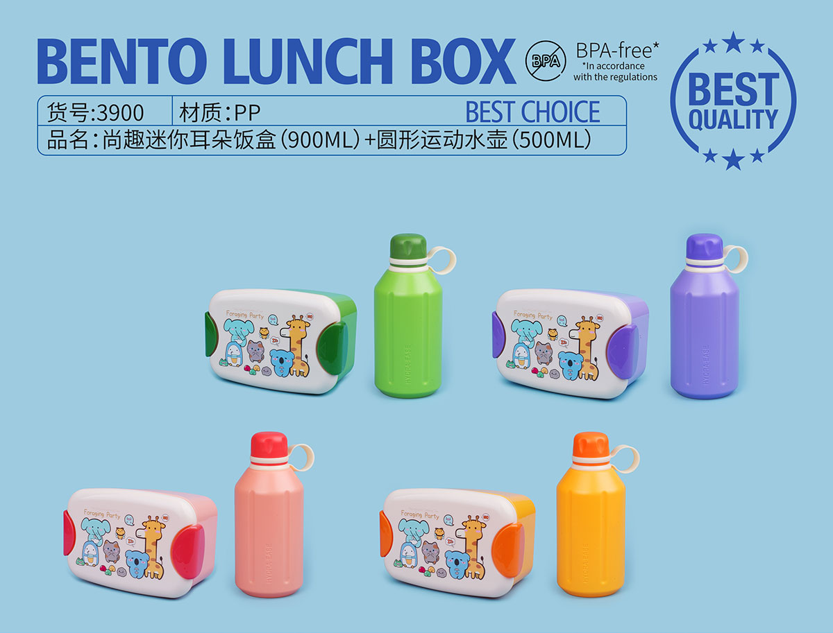 尚趣迷你耳朵飯盒(900ml)+圓形運動水壺(500ml)