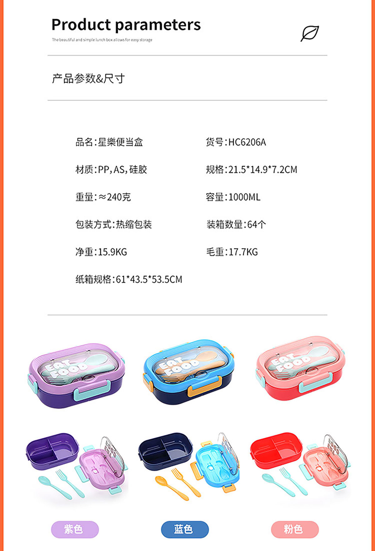 Size: SWY-HC6206A(三格PP款):215*149*72mm/1000ml