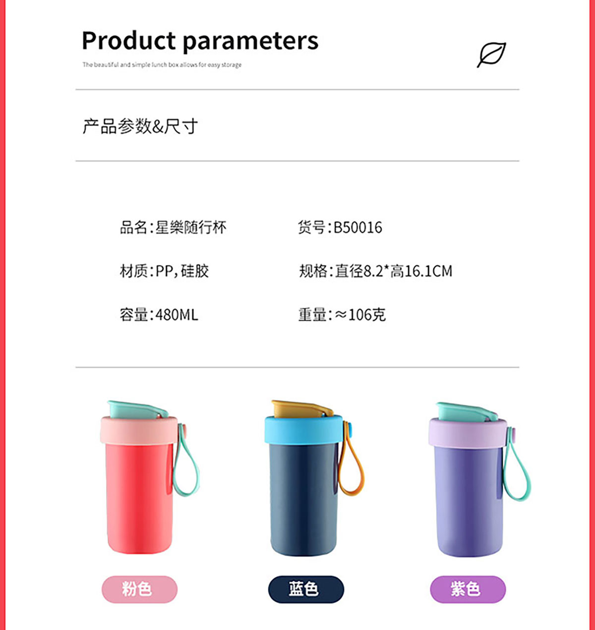 SWY-T205(水杯套裝):飯盒:215*149*72mm/1000ml 水杯:直徑82*高161mm/480ml