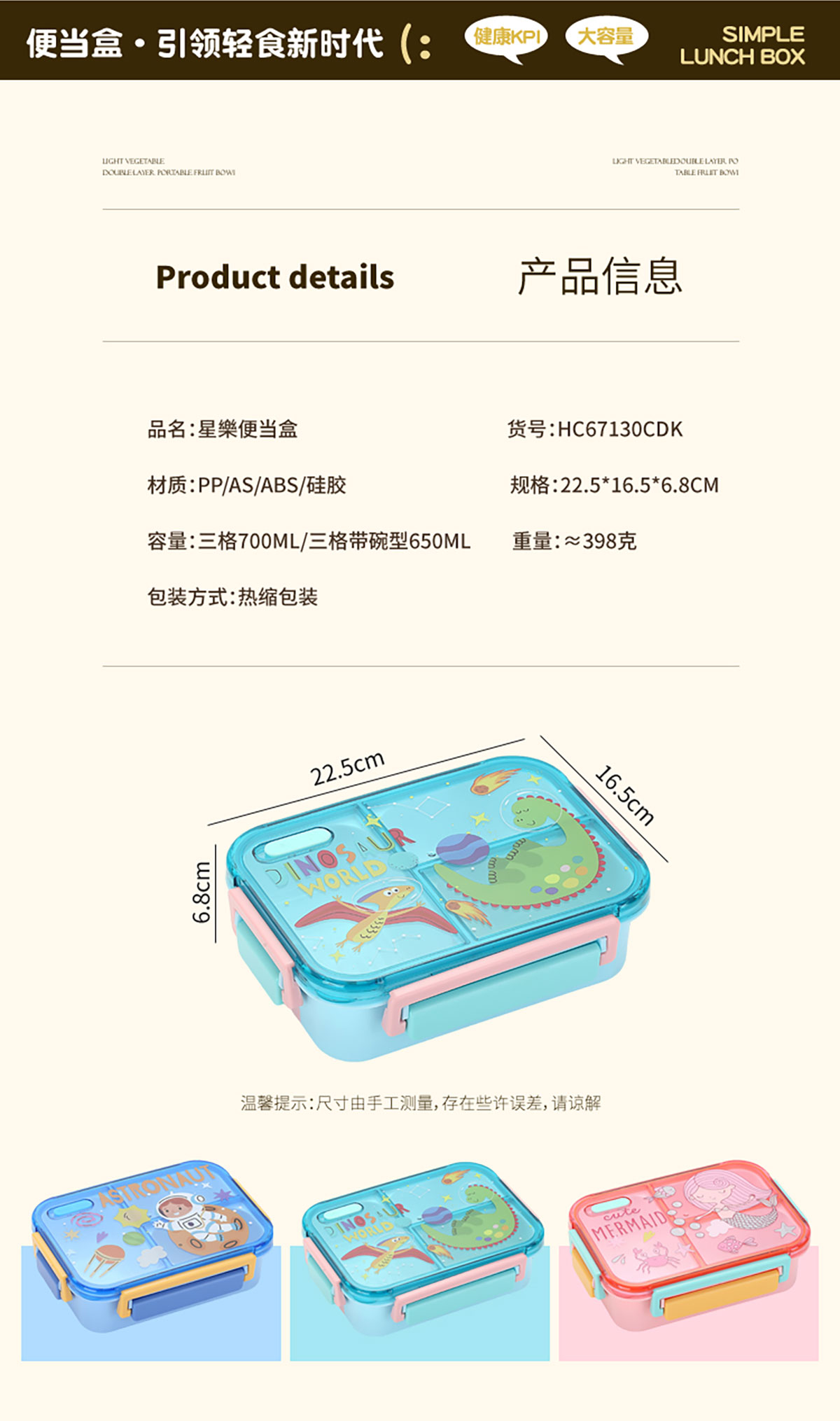 Size: 225*165*68mm(三格700ml/三格帶碗650ml)