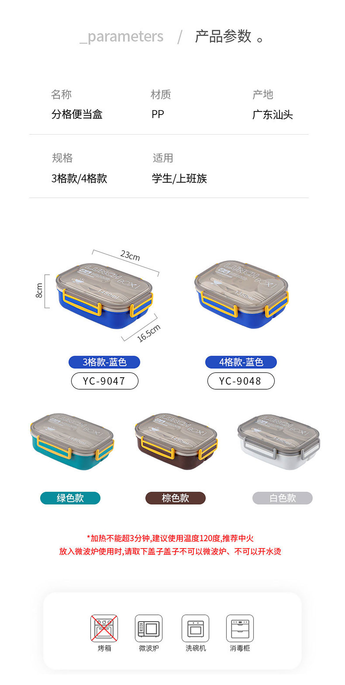 Size: YC-9047(三分格):230*165*80mm/1450ml YC-9048(四分格):230*165*80mm/1350ml