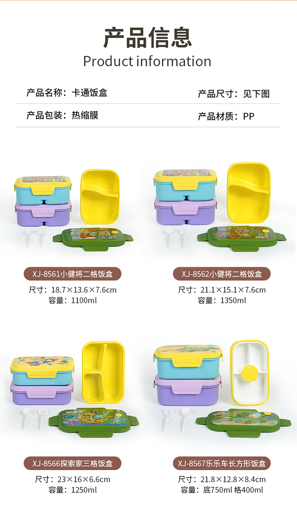 HH-XJ8567(樂樂車長方形飯盒):218*128*84mm
