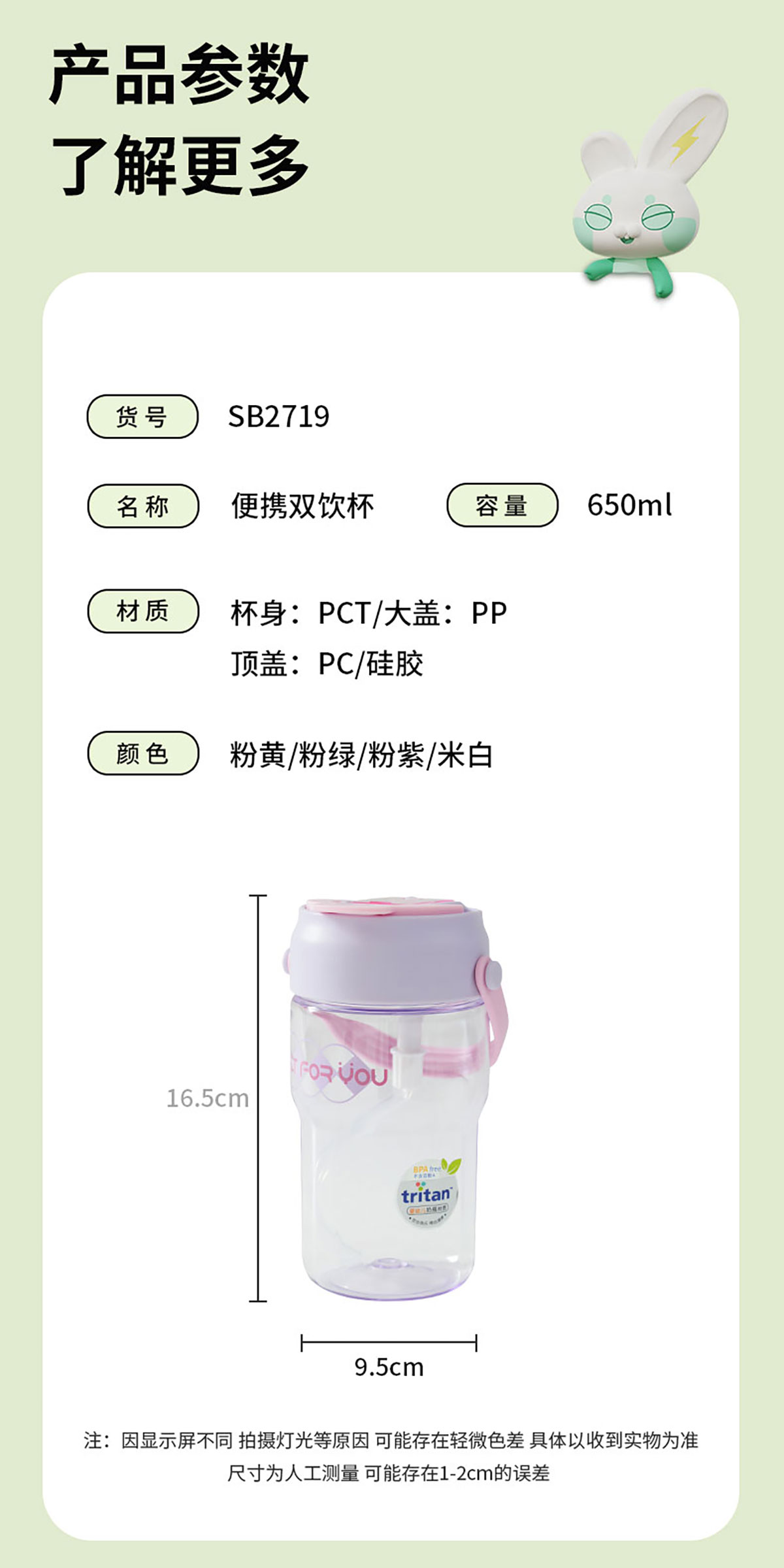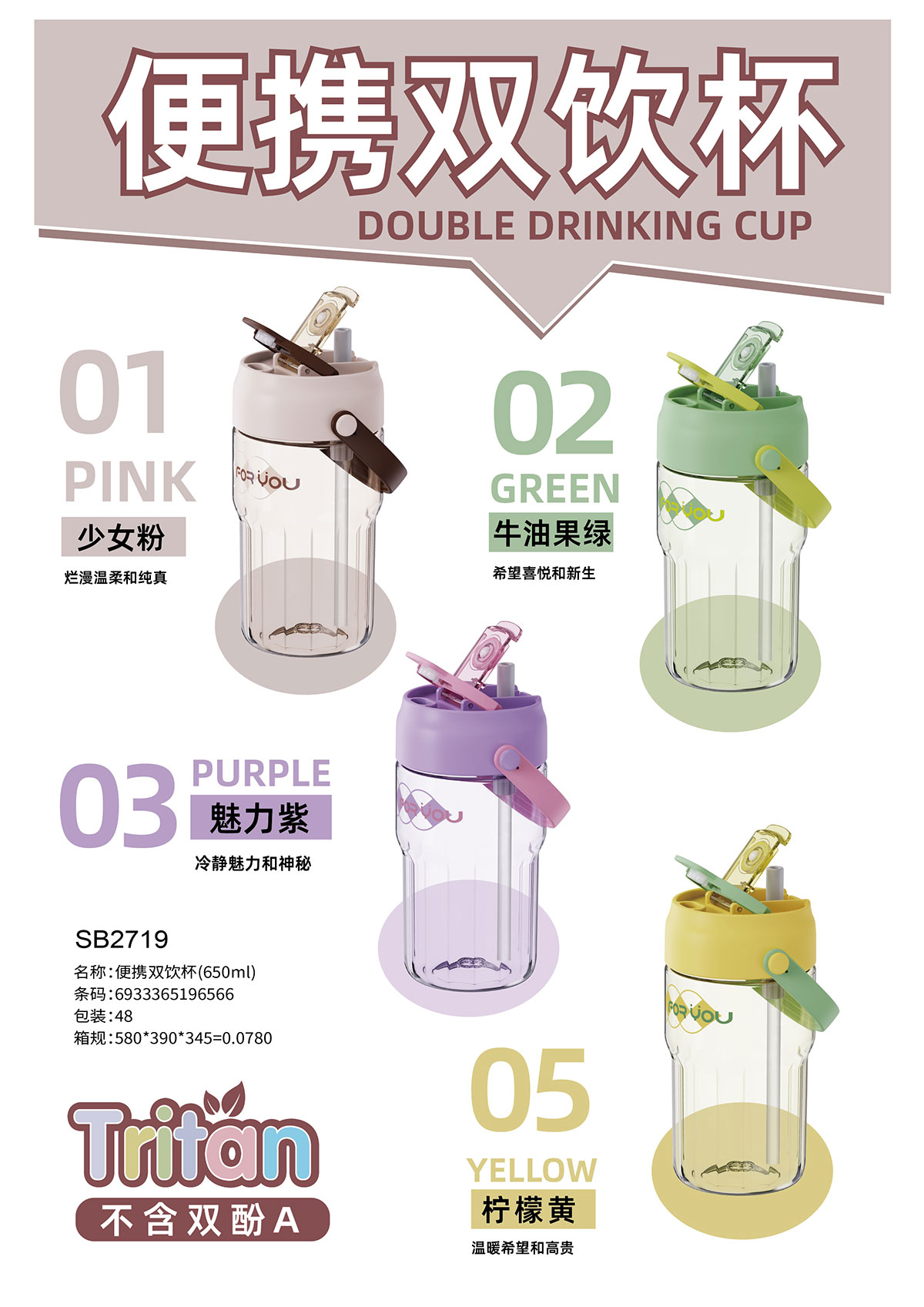 便攜雙飲杯(650ml) 彩盒裝/OPP裝